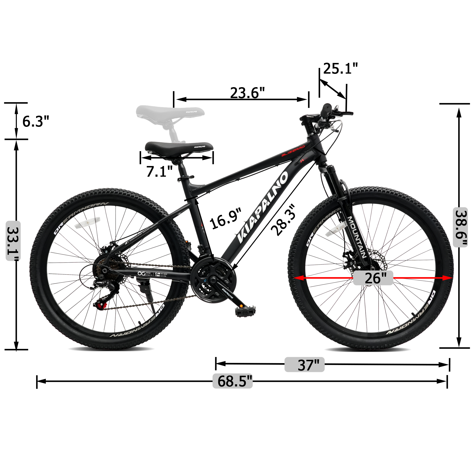 A26317 KIAPALNO 26 Inch All-Terrain Mountain Bike With Disc Brakes 21-Speed Drivetrain & Durable Carbon Steel Frame Ideal For Men And Women, Perfect For Trail Riding And Touring