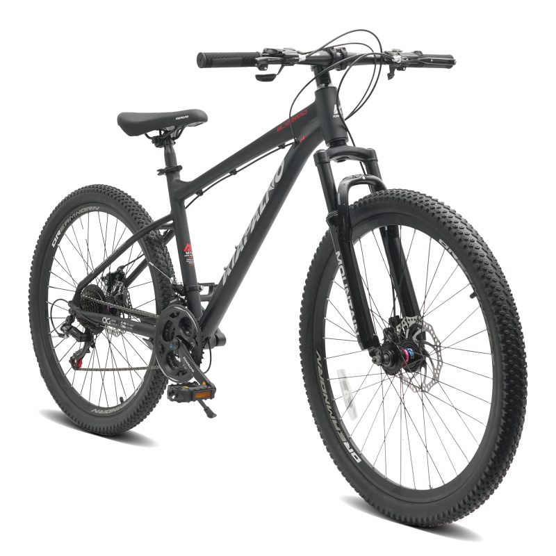【Front Suspension Design for a Comfortable Ride】This mountain bike is equipped with a front shock absorber that effectively absorbs bumps on rough terrain, providing a smooth and comfortable riding experience across various landscapes.