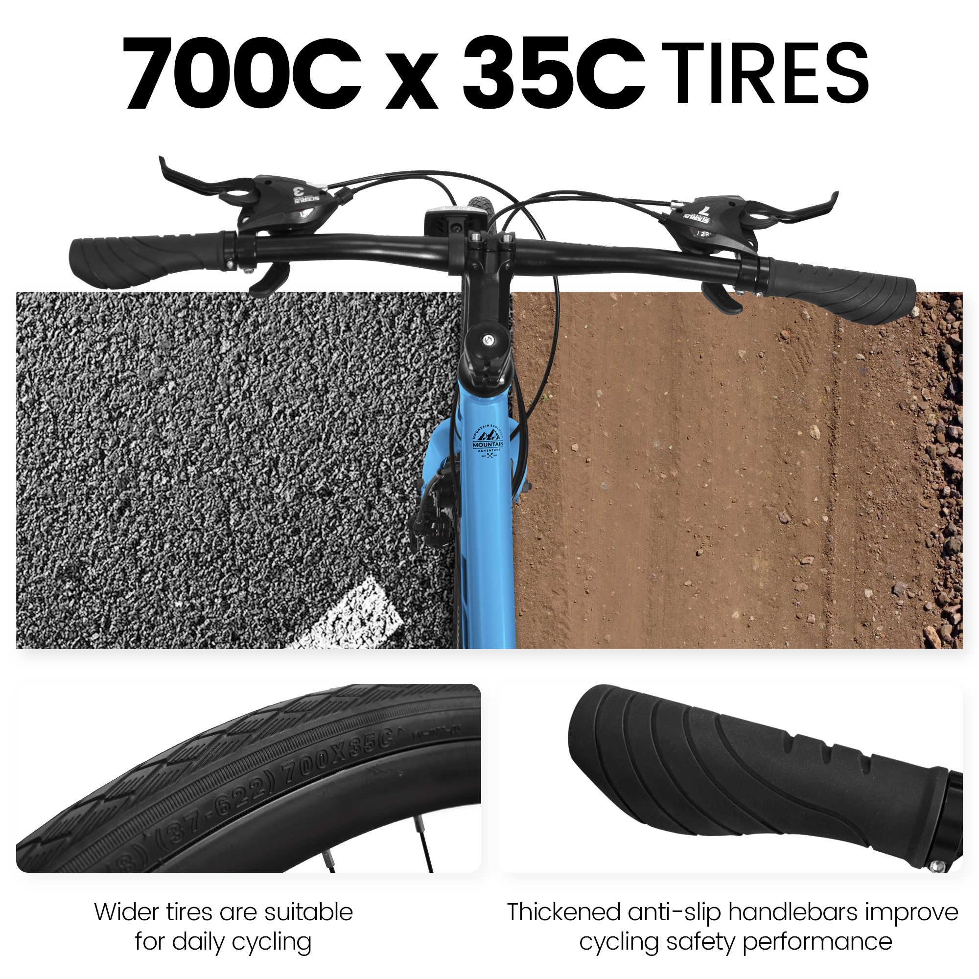 Product Name:A28250 700Cx35 Road Bike with Aluminum Alloy Wheels, 21-Speed Gear System, Disc Brakes, Wide Tires – Ideal for Urban Commuting and Student Transportation