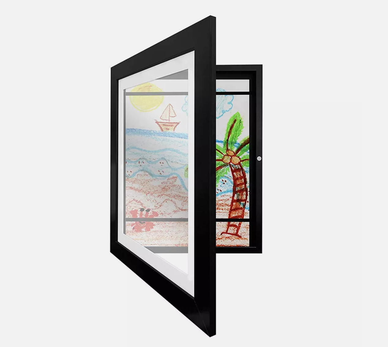 • Material: The deep detachable photo frame is made of high-quality glossy acrylic glass and wood-based panel frame, making your artwork clearly visible. Simply slide your favorite artwork under the provided elastic band to secure and their artwork is ready to display.