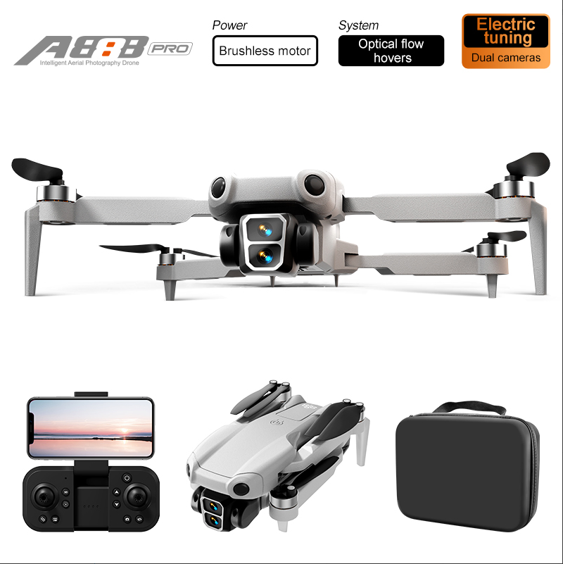 Product Description Take your aerial photography to new heights with the A88 Pro Intelligent Aerial Photography Drone. Designed for both beginners and enthusiasts, this foldable quadcopter combines powerful performance, advanced features, and ultimate portability. Key Features: Brushless Motor: Delivers powerful, stable, and quiet flight performance with longer battery life and reduced maintenance. Dual HD Cameras: Capture stunning 4K photos and videos from the air with dual-lens technology, perfect for vlogging, travel, and creative projects. Optical Flow Hover System: Ensures precise hovering and stable flight, even in indoor or low-light environments, making it ideal for beginners. Foldable & Portable: Lightweight, foldable design fits easily into the included carry case, so you can take it anywhere for on-the-go adventures. Electric Tuning: Fine-tune your flight settings for optimal performance and responsiveness. FPV Real-Time Transmission: Connect your smartphone to the controller for a first-person view of the sky, with smooth, lag-free streaming. Whether you're exploring new landscapes, capturing family moments, or just having fun, the A88 Pro Drone is your perfect flying companion.