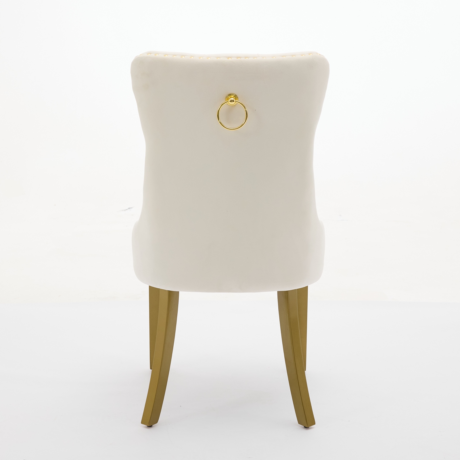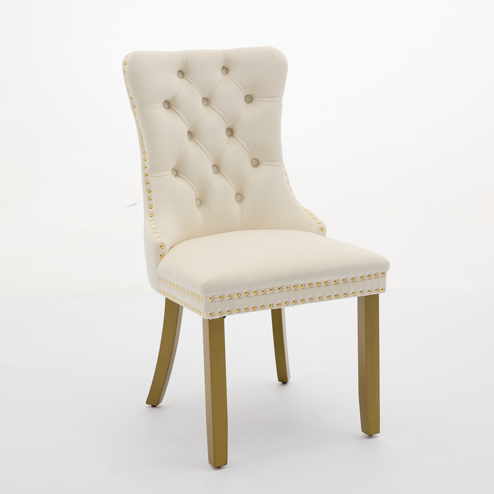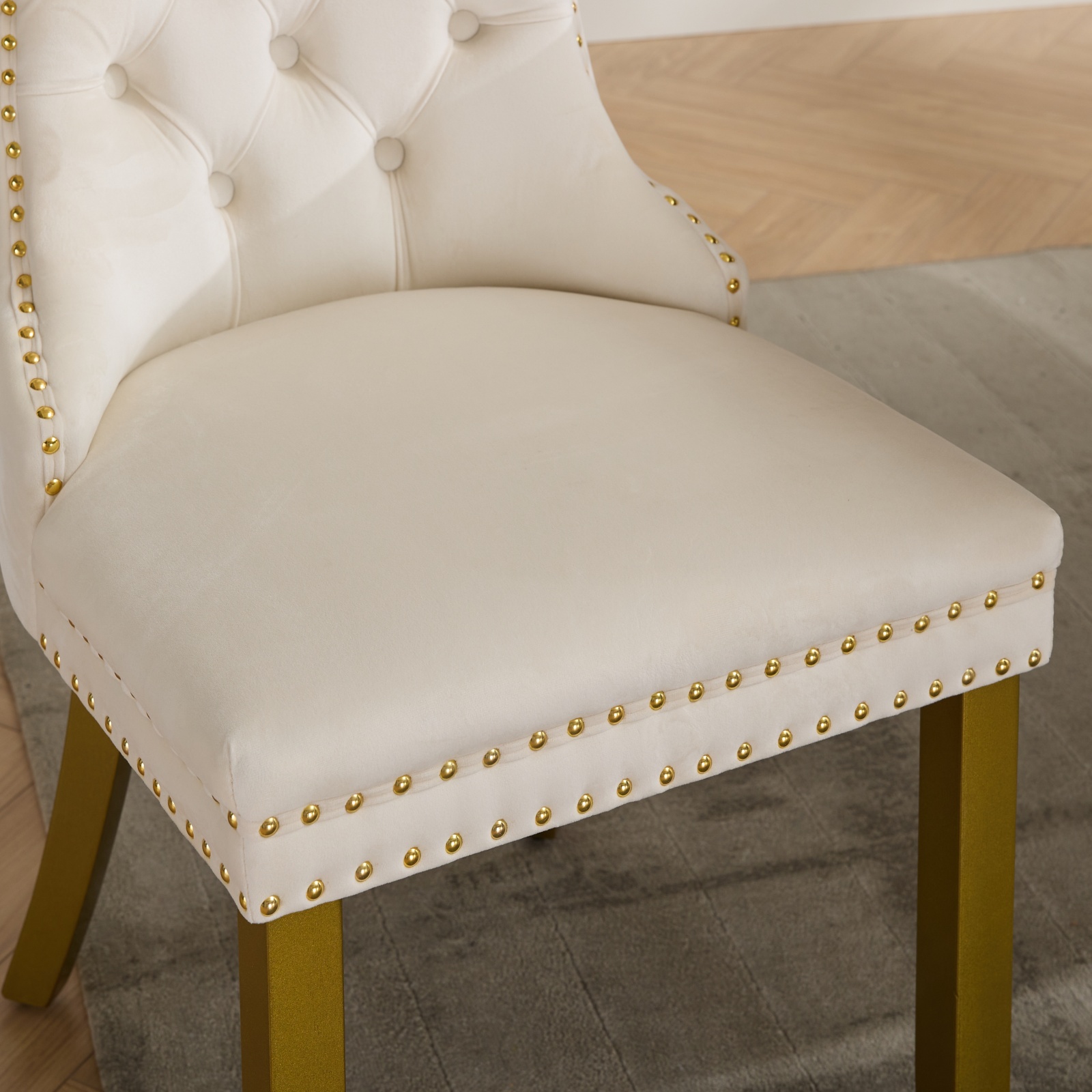 Product Name:A&A Furniture, Nikki Collection Modern, High-end Tufted Solid Wood Contemporary Velvet Upholstered Dining Chair with golden Wood Legs Nailhead Trim 2-Pcs Set, Milky White,SW1401MW