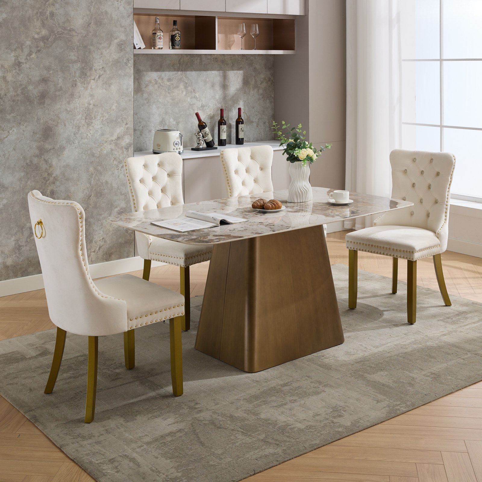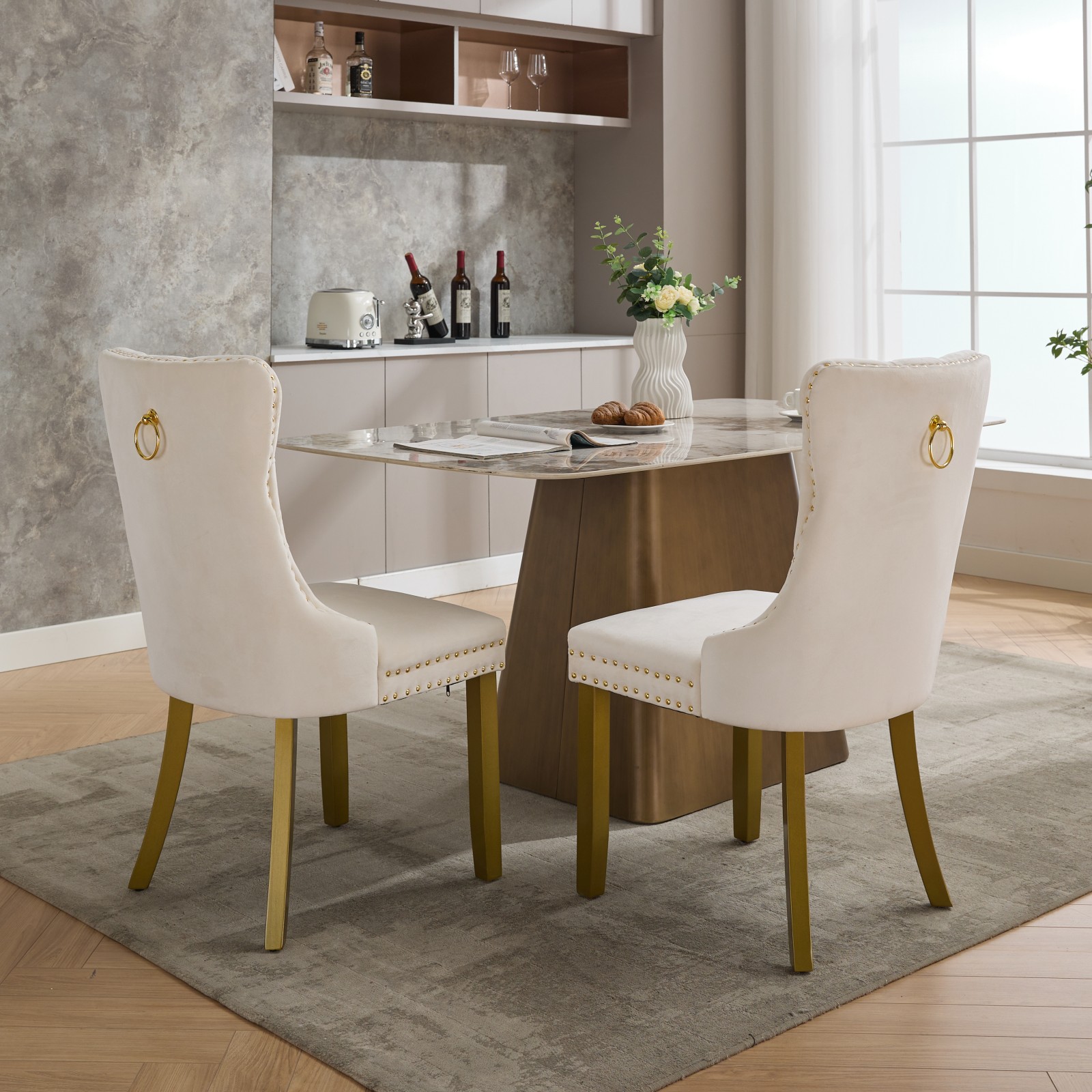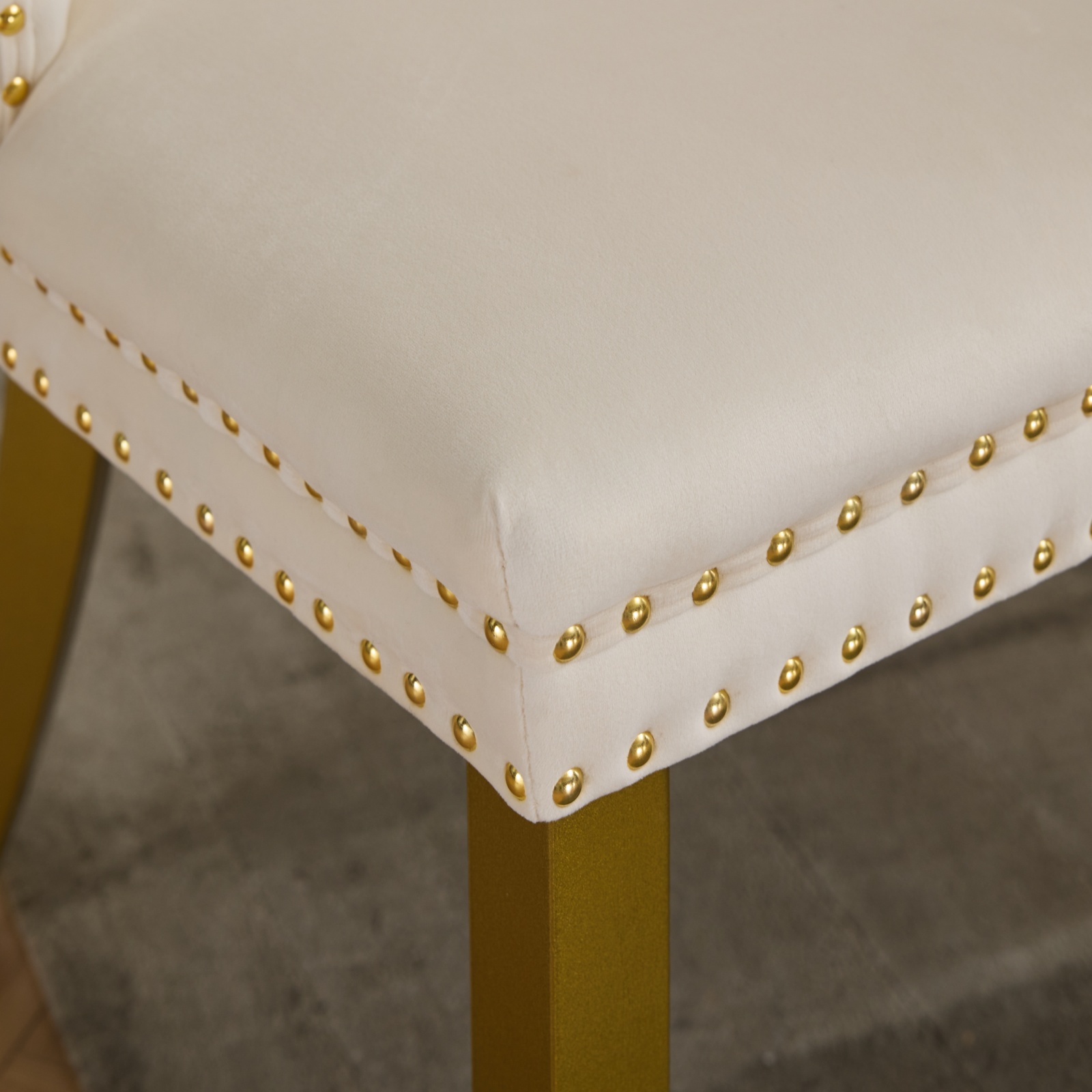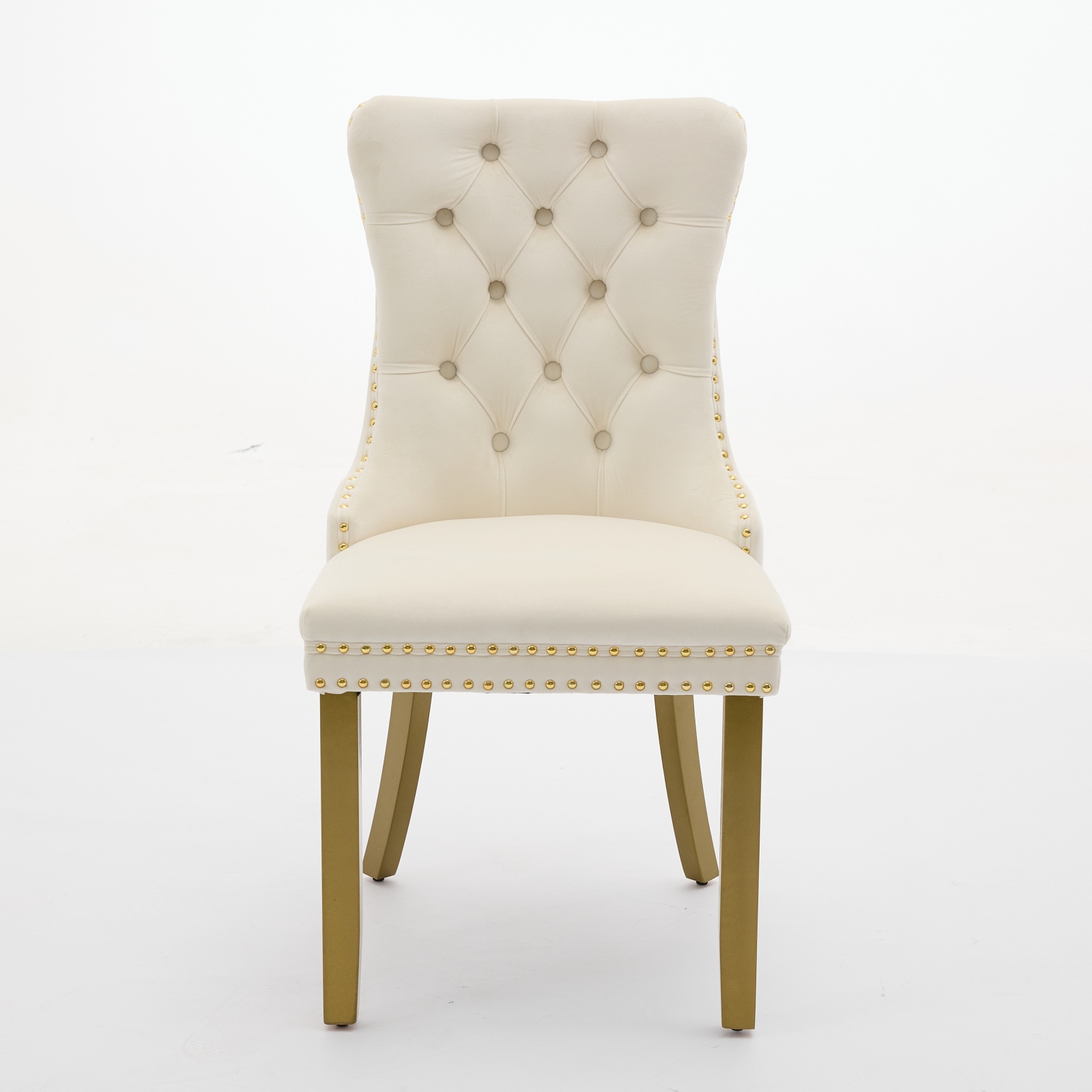 Product Name:A&A Furniture, Nikki Collection Modern, High-end Tufted Solid Wood Contemporary Velvet Upholstered Dining Chair with golden Wood Legs Nailhead Trim 2-Pcs Set, Milky White,SW1401MW