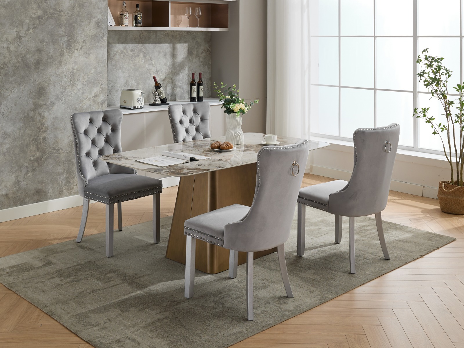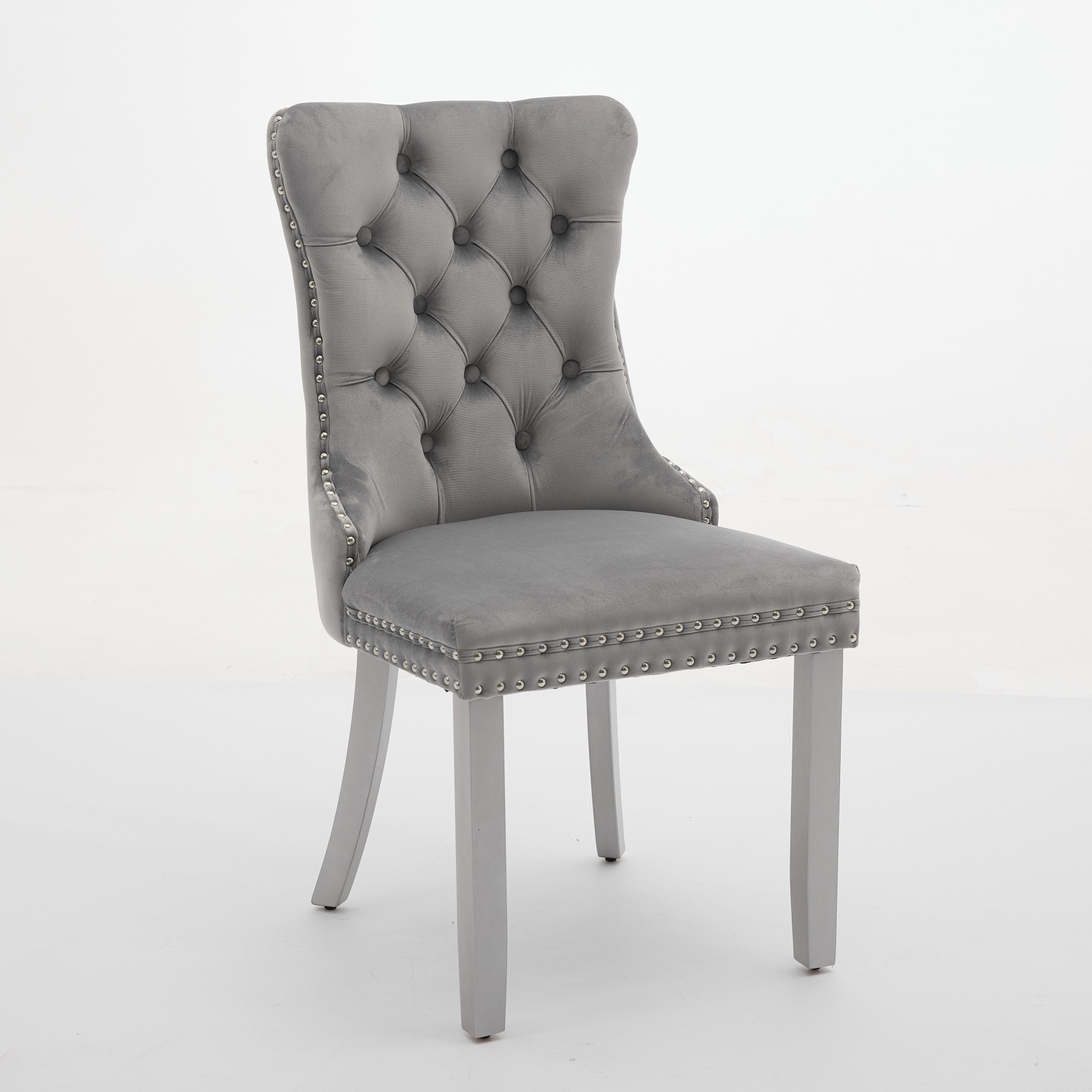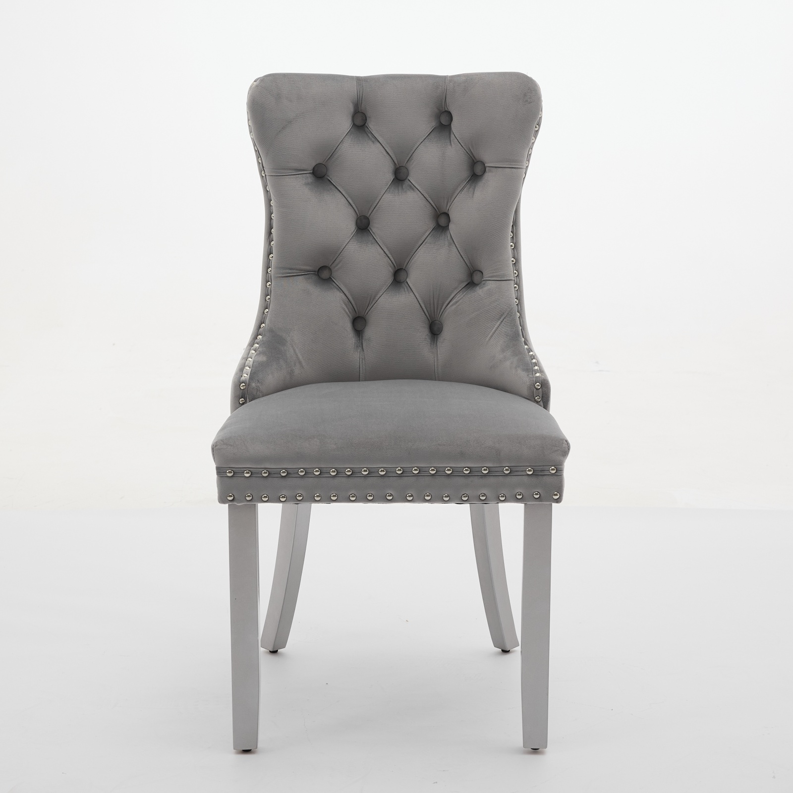 Product Name:A&A Furniture, Nikki Collection Modern, High-end Tufted Solid Wood Contemporary Velvet Upholstered Dining Chair with Wood Legs Nailhead Trim 2-Pcs Set, Light Gray,SW1301LG
