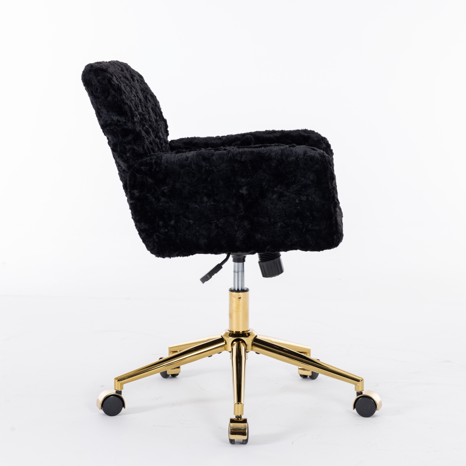 A&A Furniture Office Chair,Artificial Rabbit Hair Home Office Chair With Golden Metal Base,Adjustable Desk Chair Swivel Office Chair,Vanity Chair Black