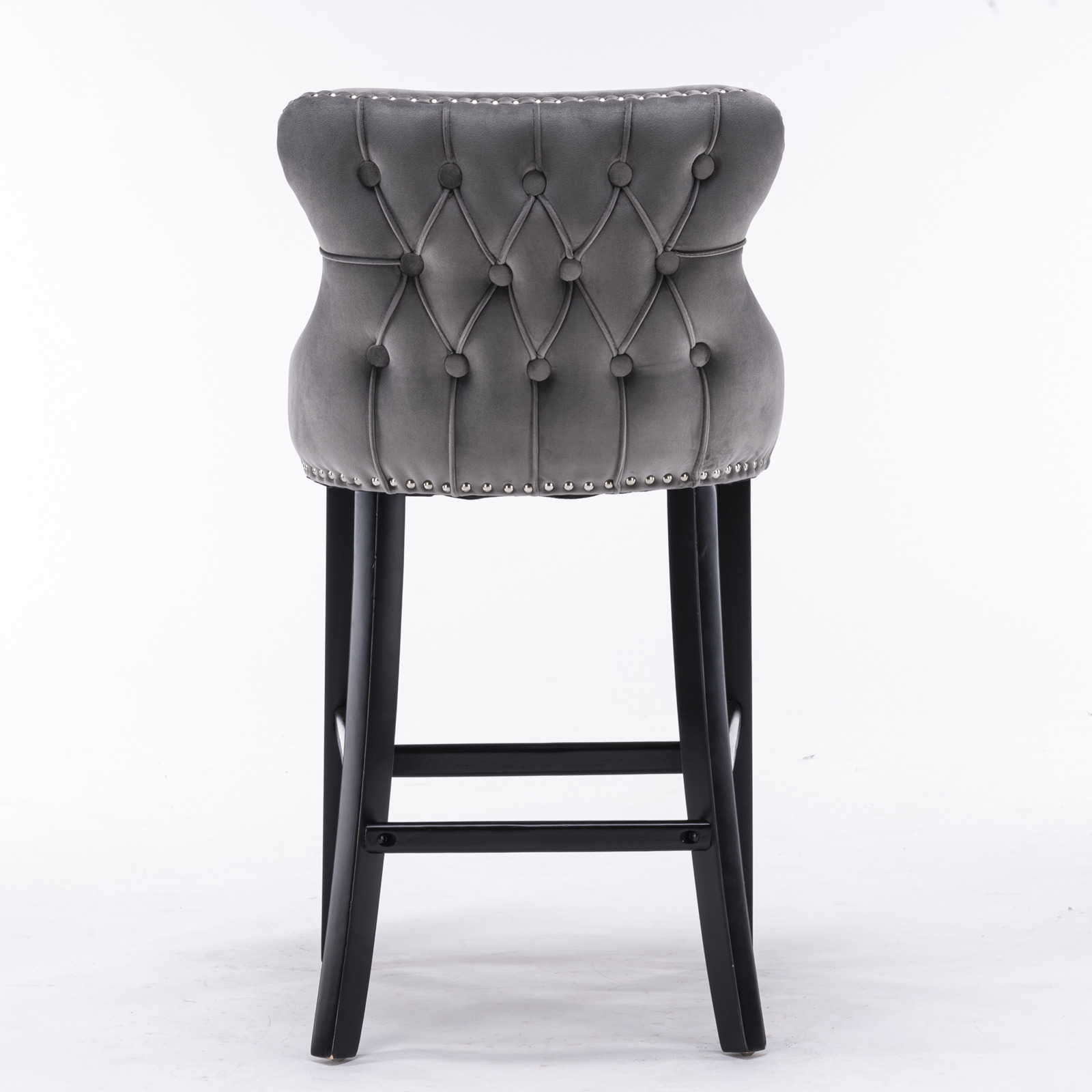 AA Furniture,Contemporary Velvet Upholstered Wing-Back Barstools With Button Tufted Decoration And Wooden Legs, And Chrome Nailhead Trim, Leisure Style Bar Chairs,Bar Stools, Set Of 2 Gray,SW1824GY