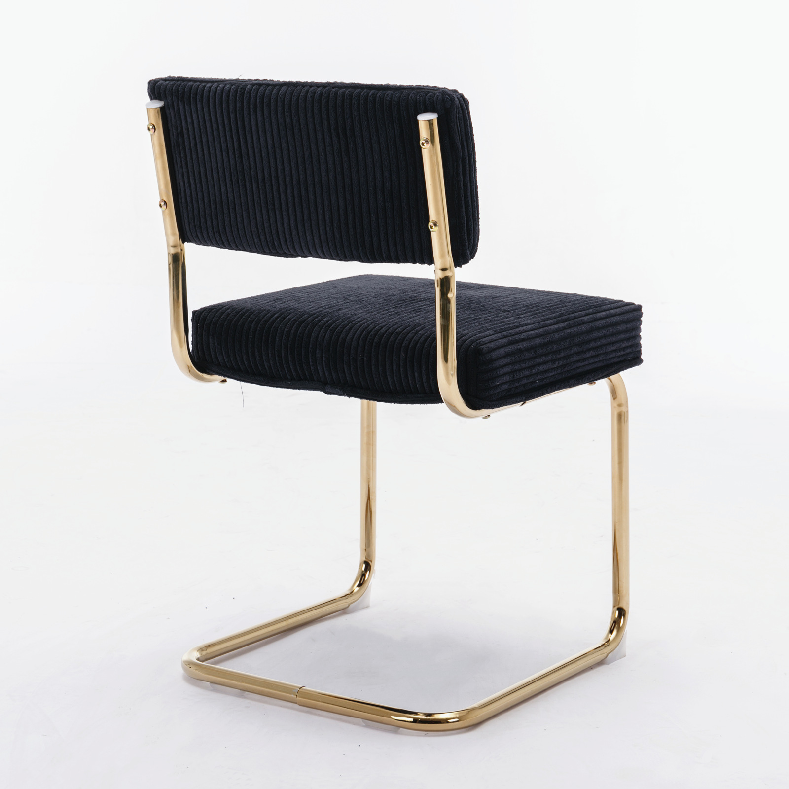 Product Name:A&A Furniture,Modern Dining Chairs with Corduroy Fabric,Gold Metal Base, Accent Armless Kitchen Chairs with Channel Tufting, Side Chairs, Set of 2, Black