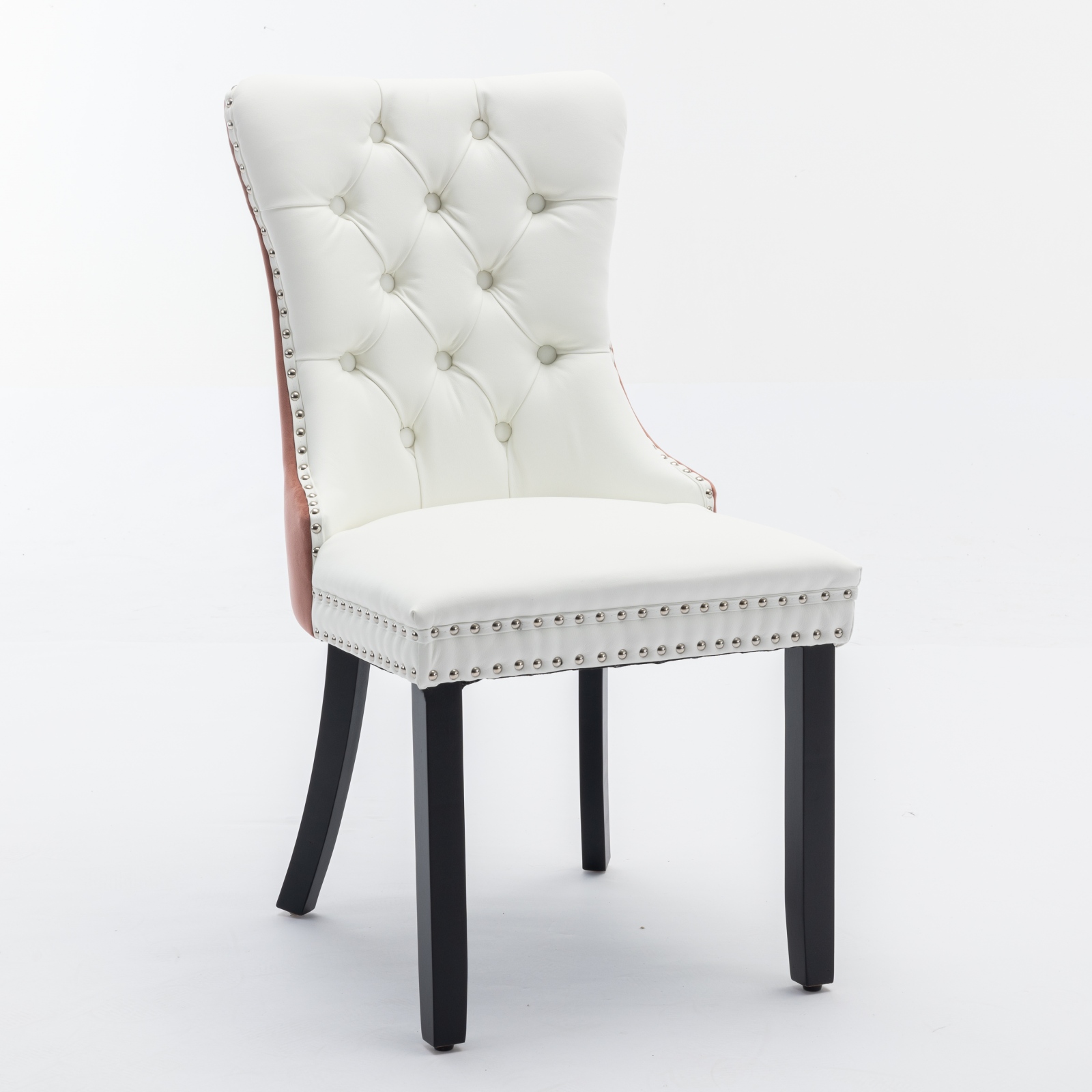 Product Name:A&A Furniture,Nikki Collection Modern, High-end Tufted Solid Wood Contemporary PU and Velvet Upholstered Dining Chair with Wood Legs Nailhead Trim 2-Pcs Set, White PU+Pink Velvet, SW2101WK