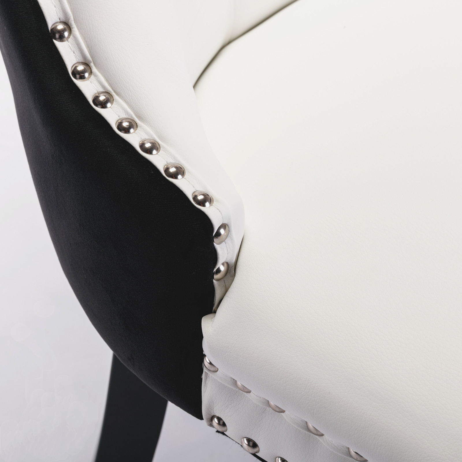 Product Name:A&A Furniture,Nikki Collection Modern,High-end Tufted Solid Wood Contemporary PU and Velvet Upholstered Dining Chair with Wood Legs Nailhead Trim 2 Pcs Set,White+Black, SW2101WB