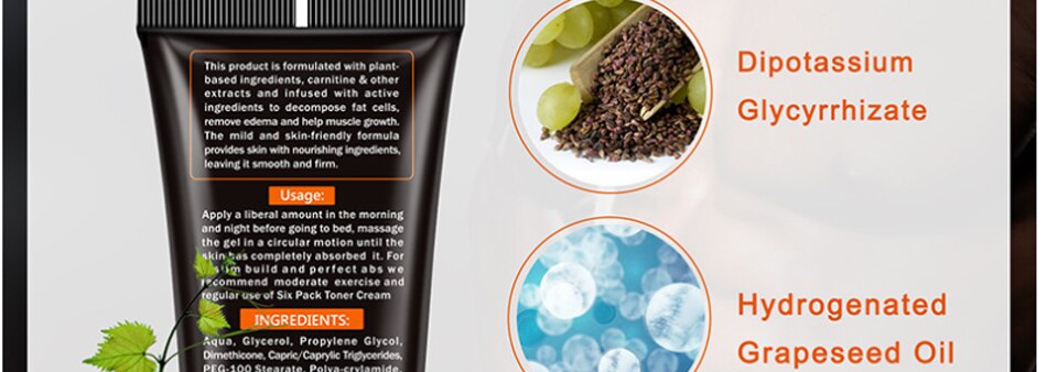 Product Efficacy --- helps tighten, condition and lubricate the abdominal muscles. Promote metabolism and increase muscle mass. Effectively breaks down fat and achieves firm body lines.
