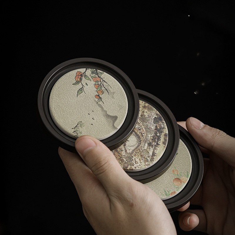 Color: water absorbent coaster-plum blossom, water absorbent coaster-Roxburgh rose, water absorbent coaster-prajna Heart Sutra, water absorbent coaster-Orchid Pavilion sequence, water absorbent coaster-batch, water absorbent coaster-Magnolia, water absorbent coaster-Persimmon, water absorbent coaster-thousands of miles landscape, water absorbent coaster-Qingming River Map, water absorbent coaster-Lotus