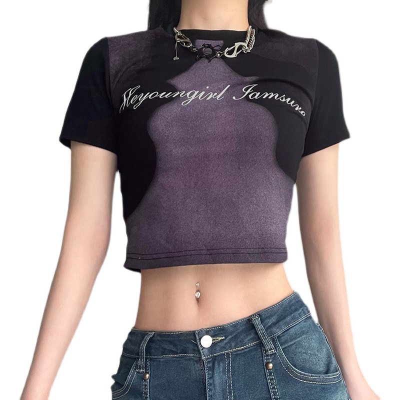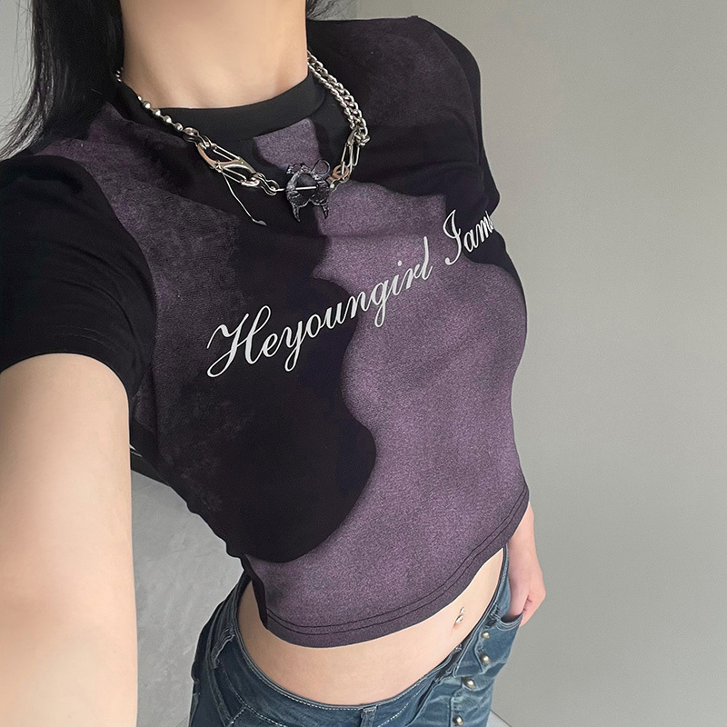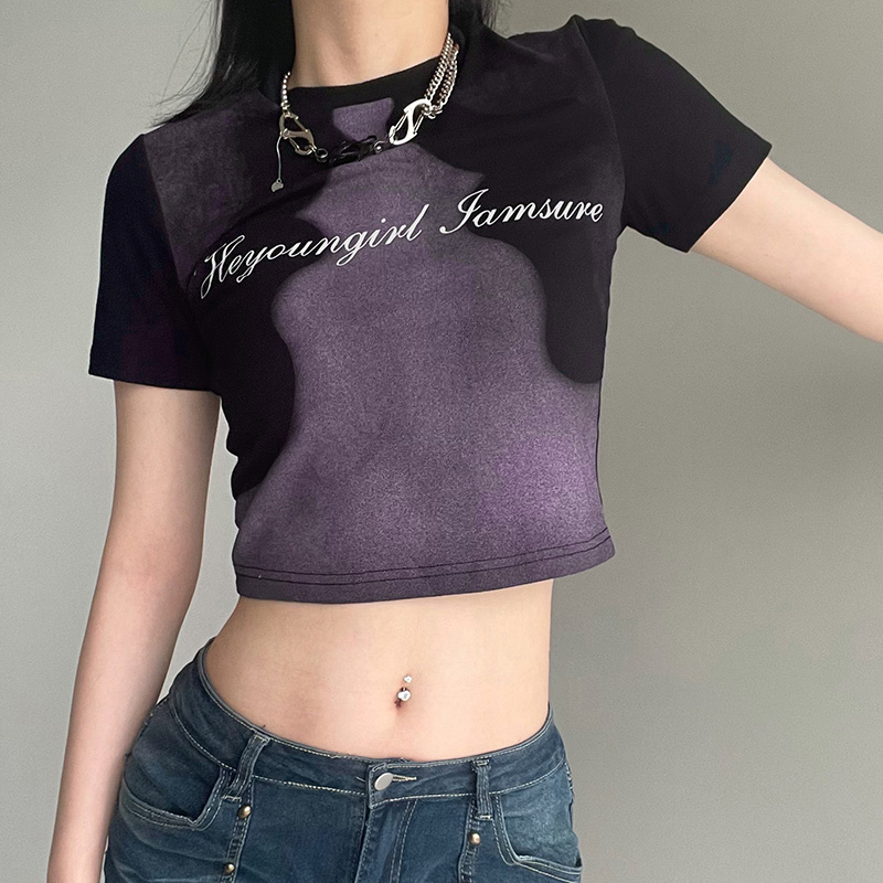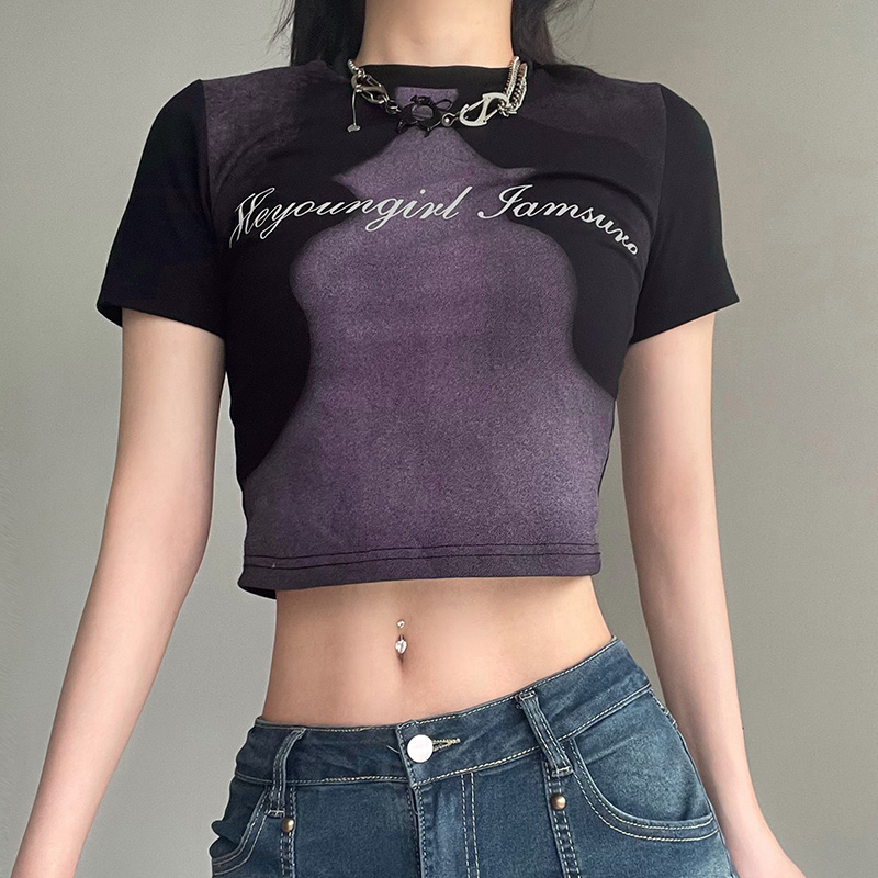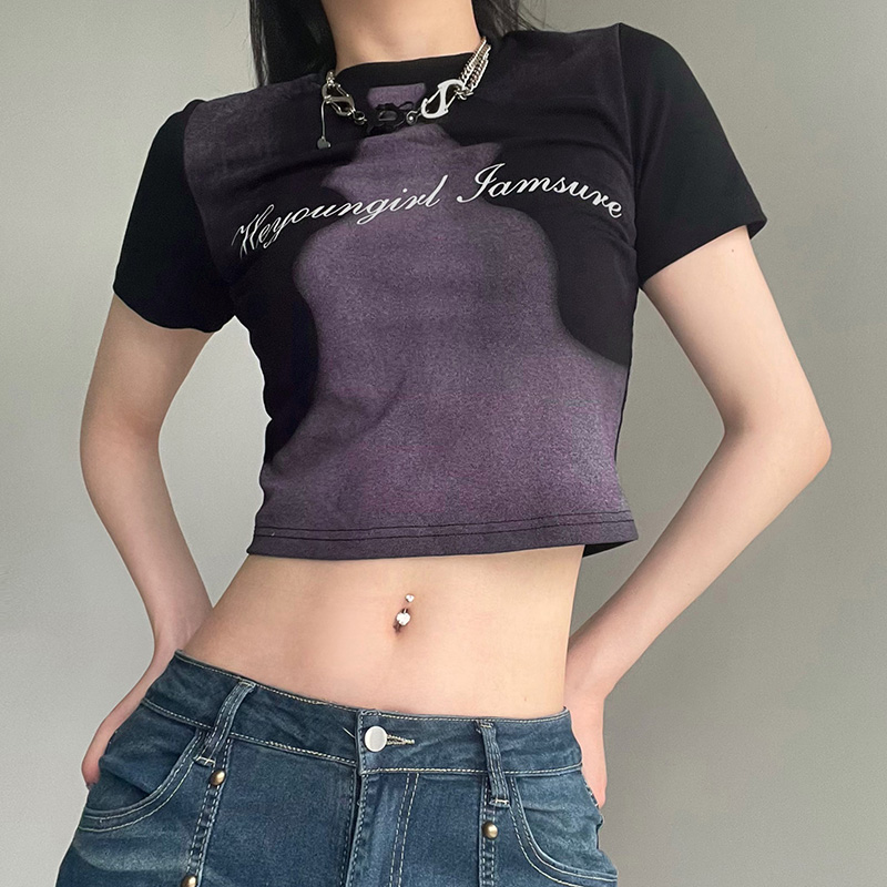 Abstract Face Print Color Contrast T-shirt Women's Slim Fit