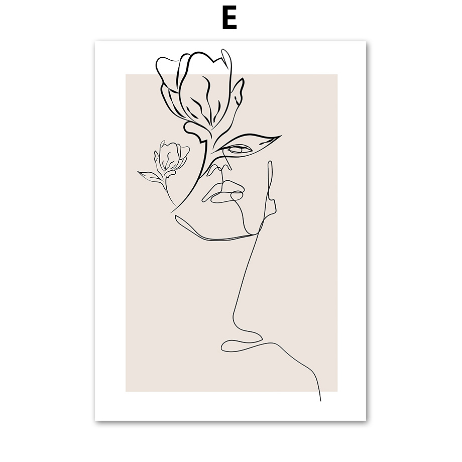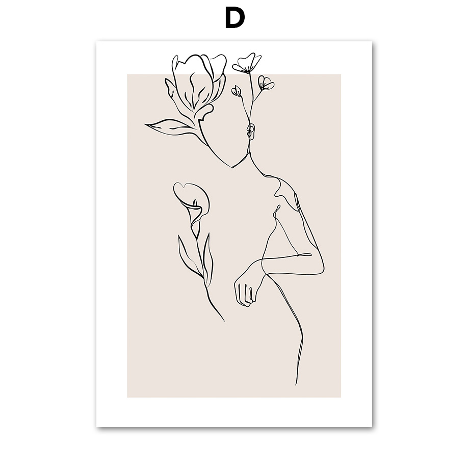Abstract Female Wall Art Canvas Floral Line Drawing Nordic Poster