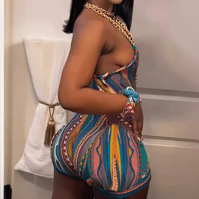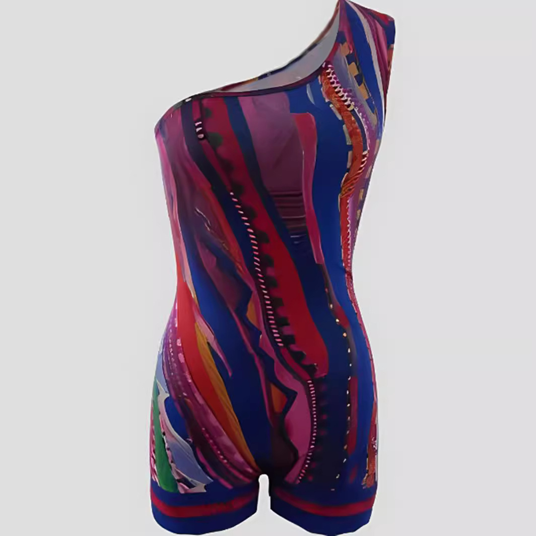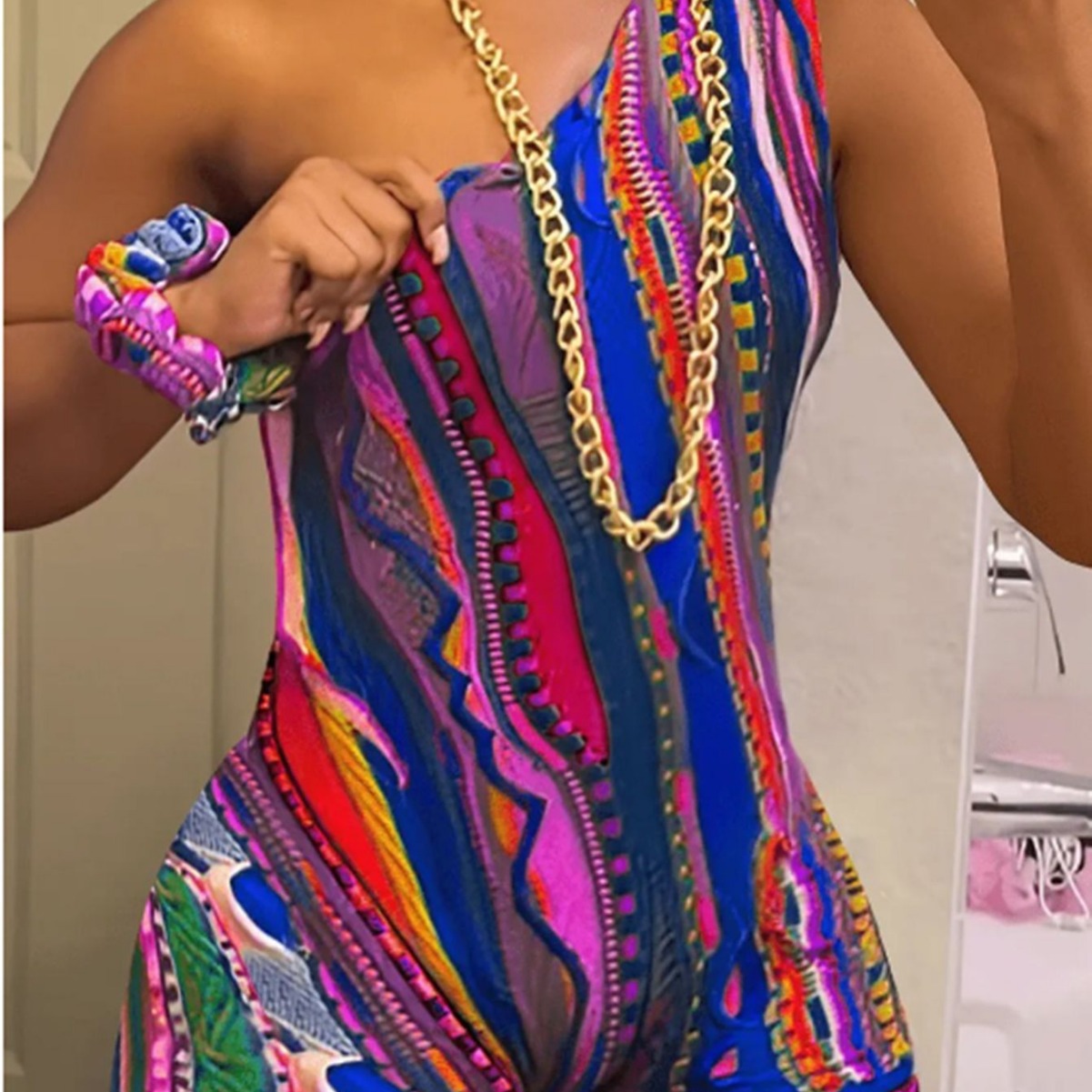 Abstract Printed Diagonal Shoulder Jumpsuit