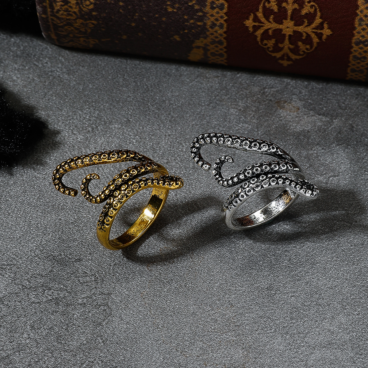 Abyssal Tentacles Vintage Octopus Claw Ring, Zinc Alloy Edgy Niche Design