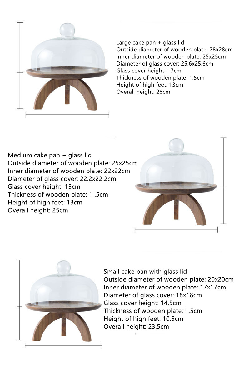 Color: Small pure wood cake pan + glass cover, medium pure wood cake plate + glass cover, large pure wood cake plate + glass cover