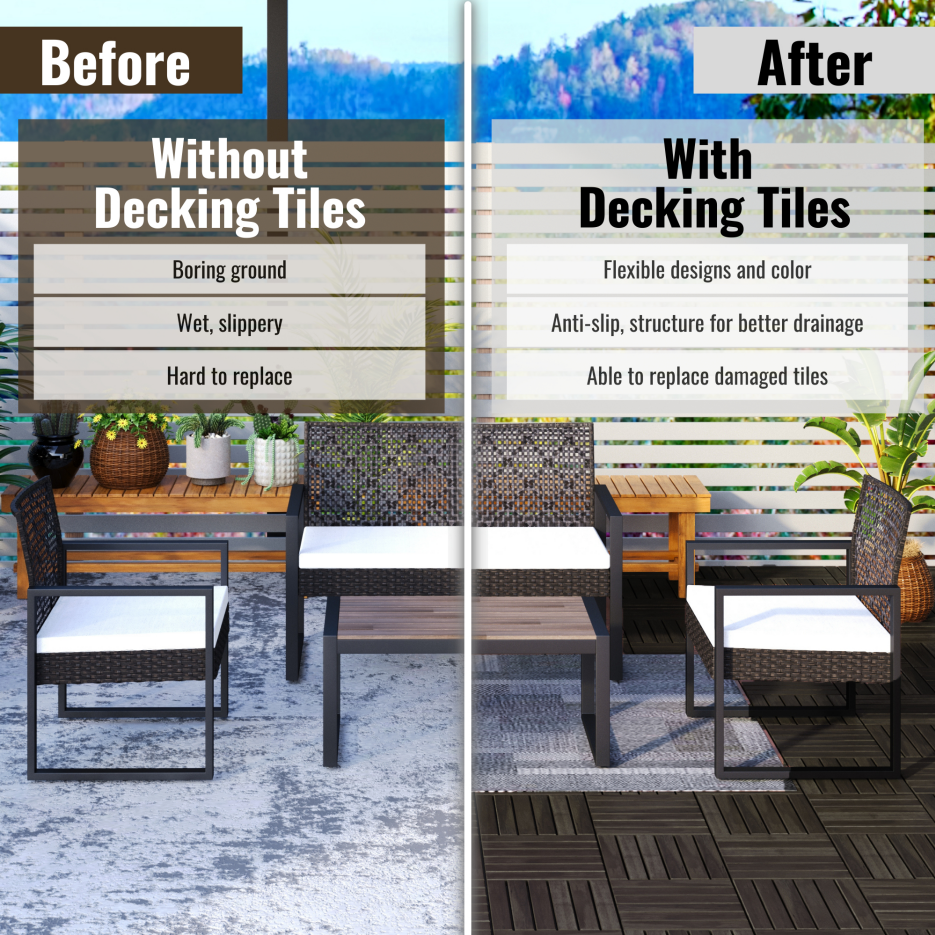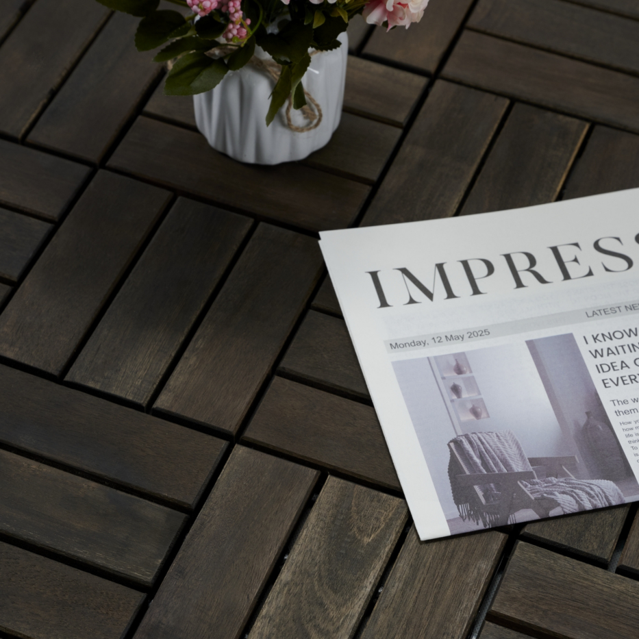 Product Name:Acacia Wood Interlocking Deck Tiles Checker Pattern, 30 PCS 12" x 12" Dark Brown Square Acacia Hardwood Outdoor Flooring for Patio, Bancony, Pool Side,...