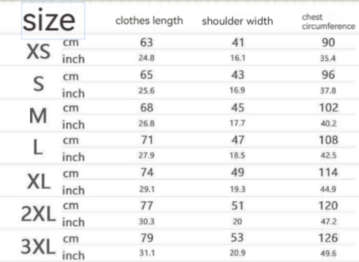 Size: XS,S,M,L,XL,XXL