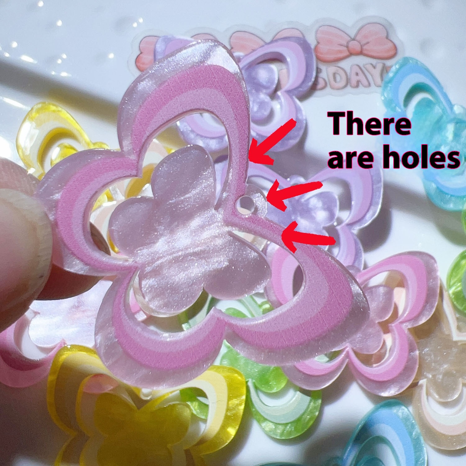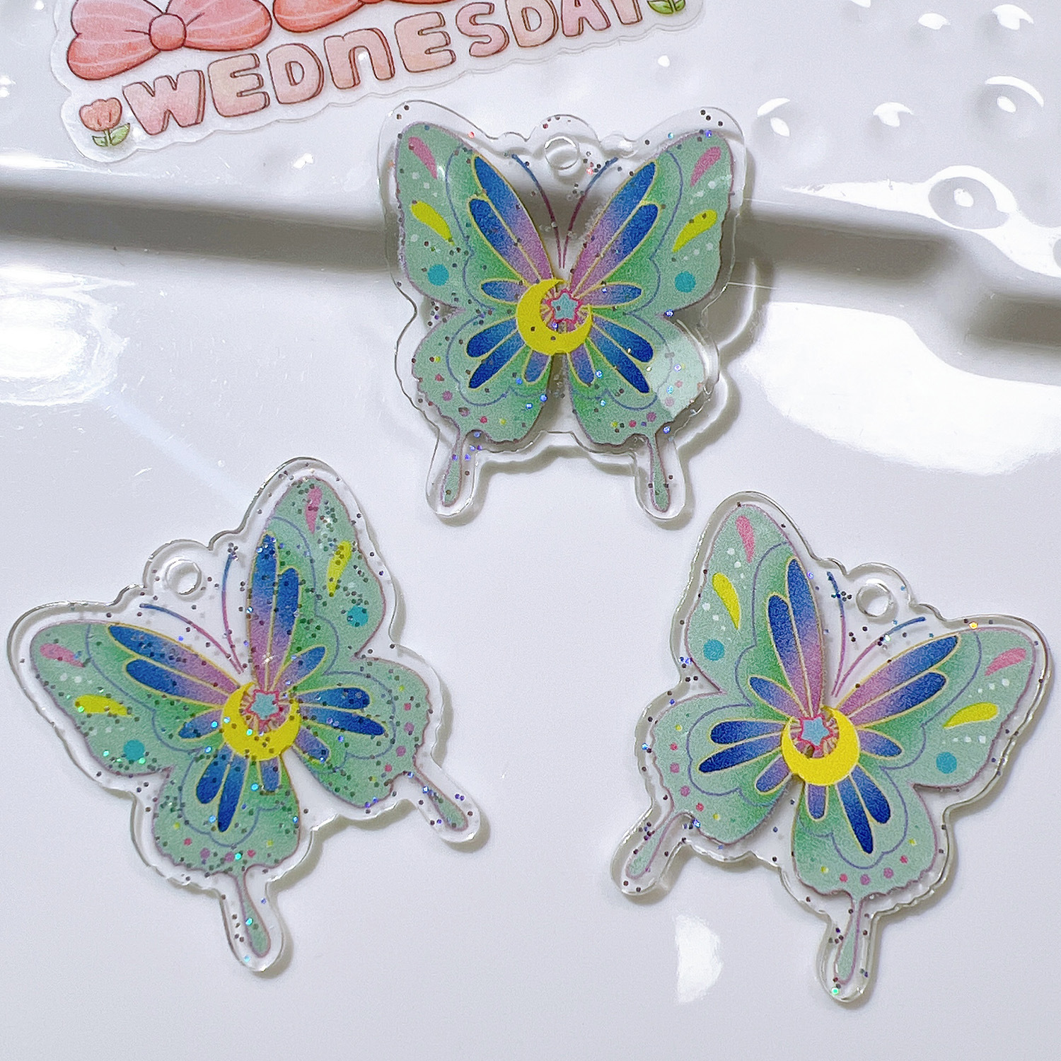 Color: yellow, black five-pointed star, Green Moon, Red Orange (Rose), yellow blue green bow, purple pink love heart, Blue Tulip, purple red