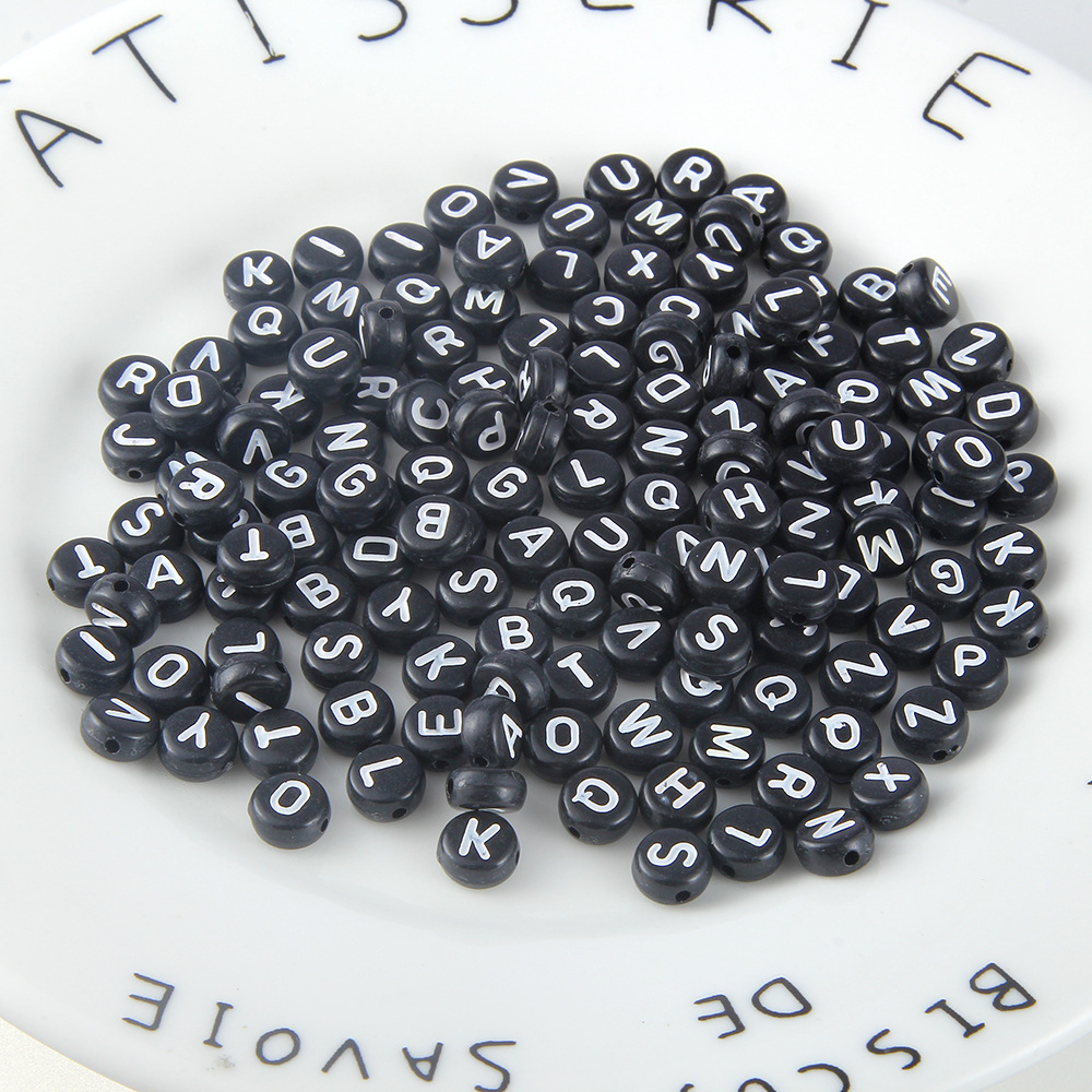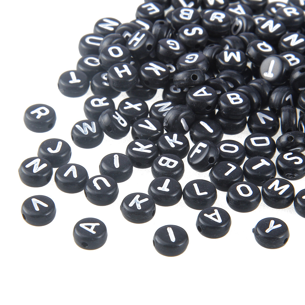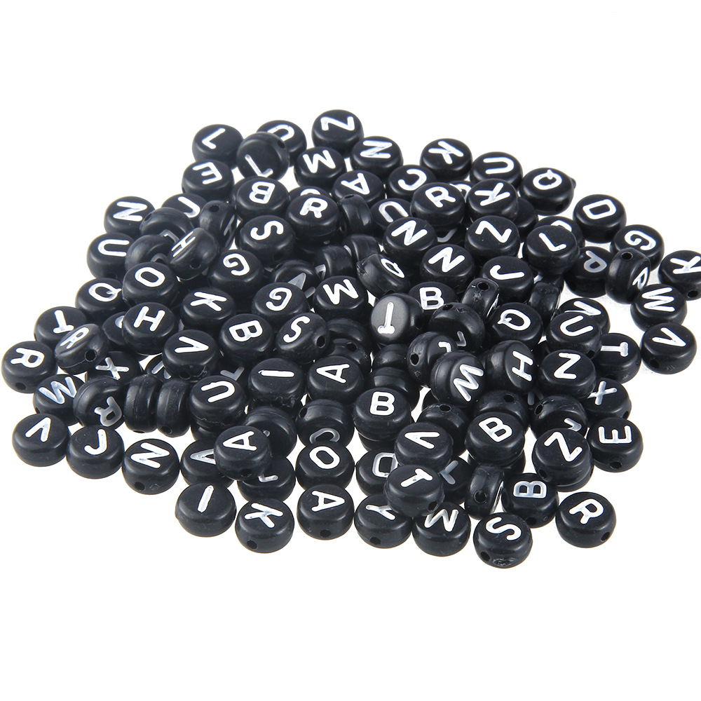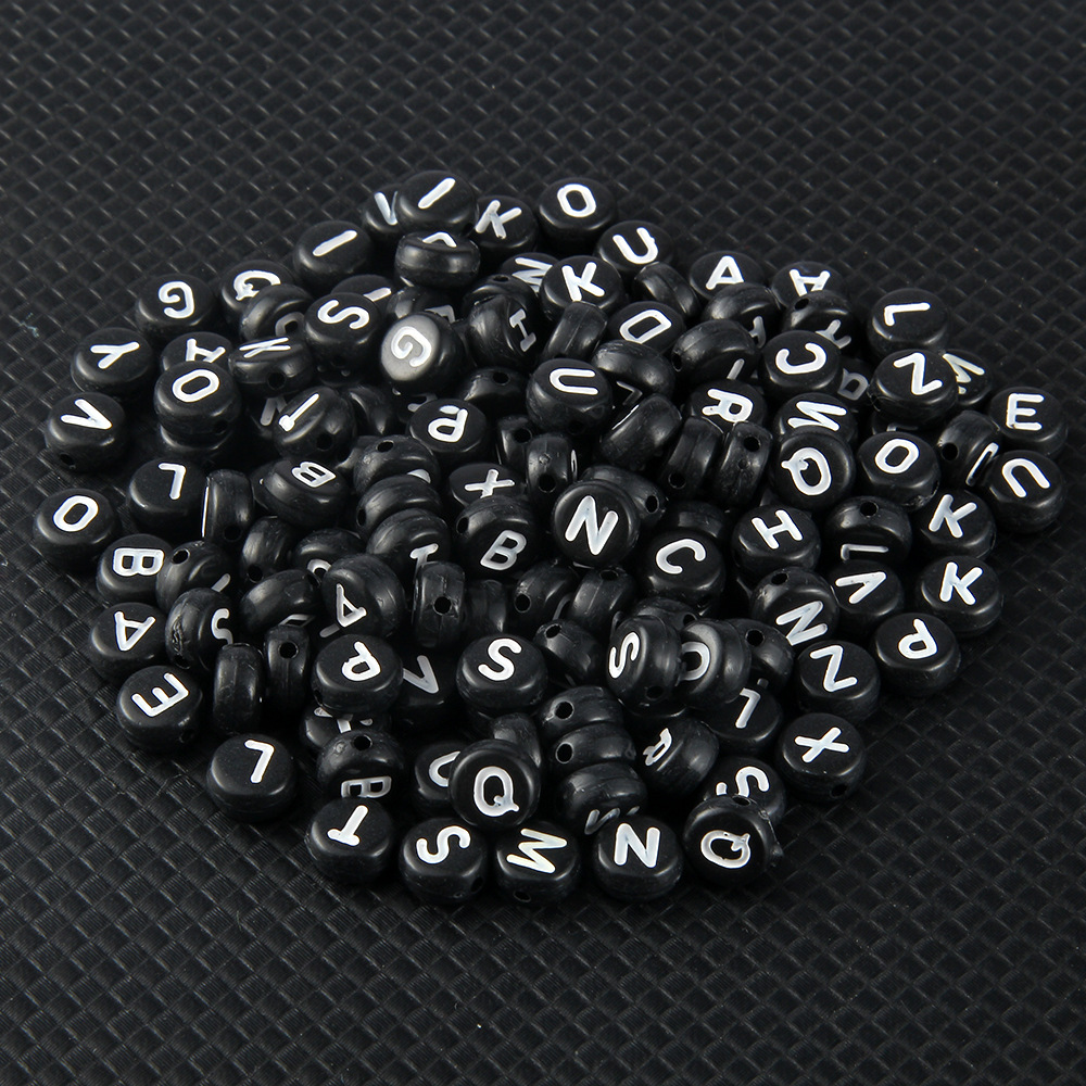 Acrylic Black Background With White Letters and English Alphabet Beads
