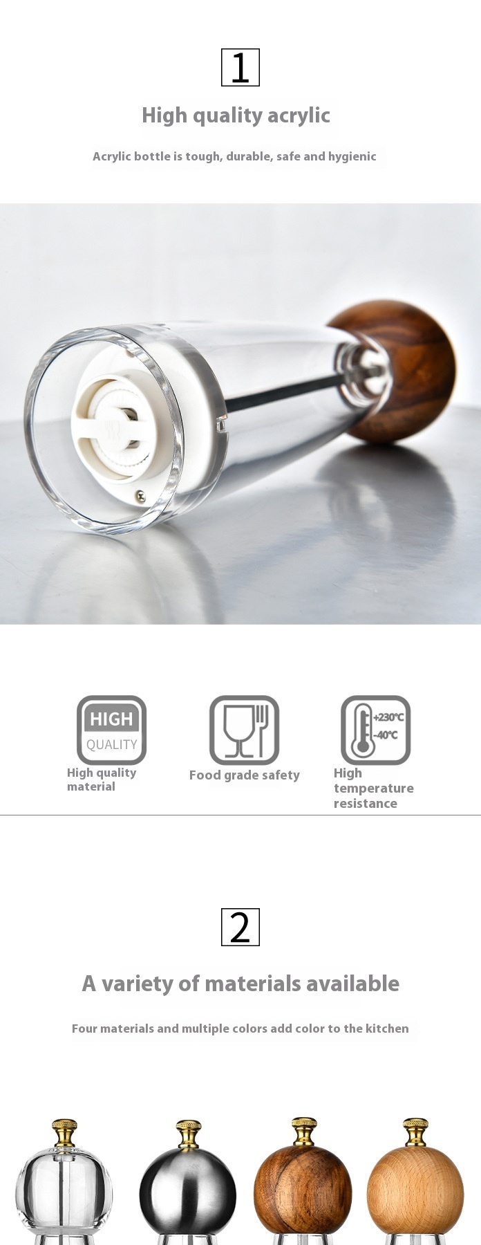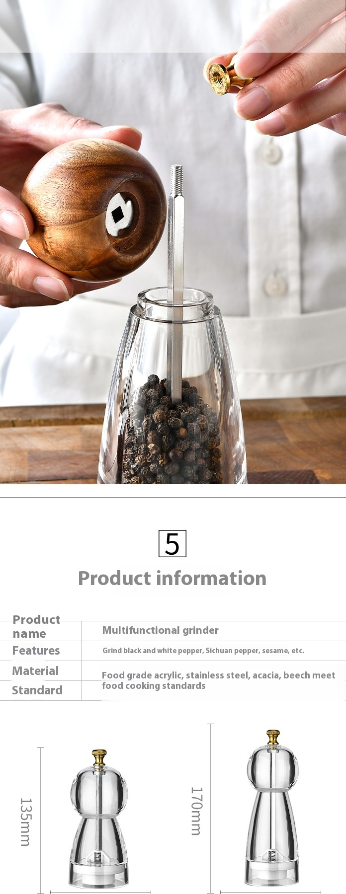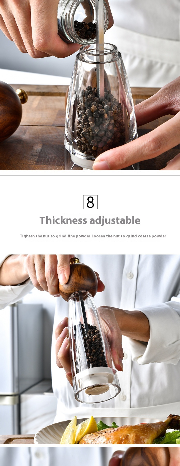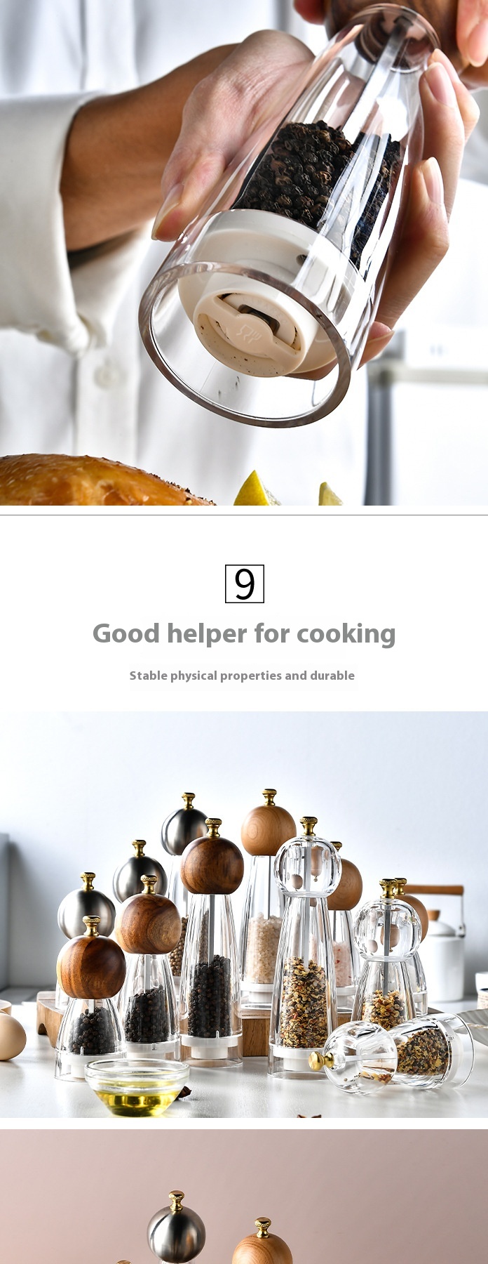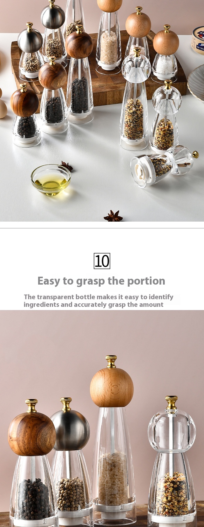 Acrylic Ceramic Core Manual Pepper Grinder Kitchen Gadget