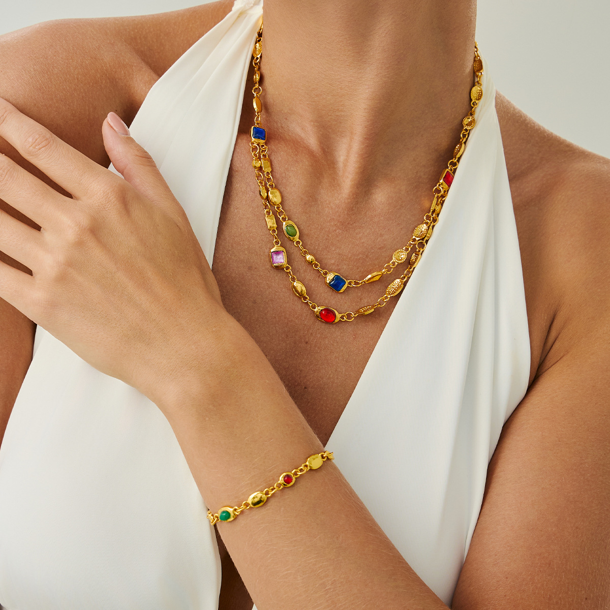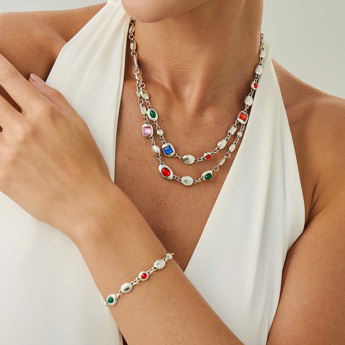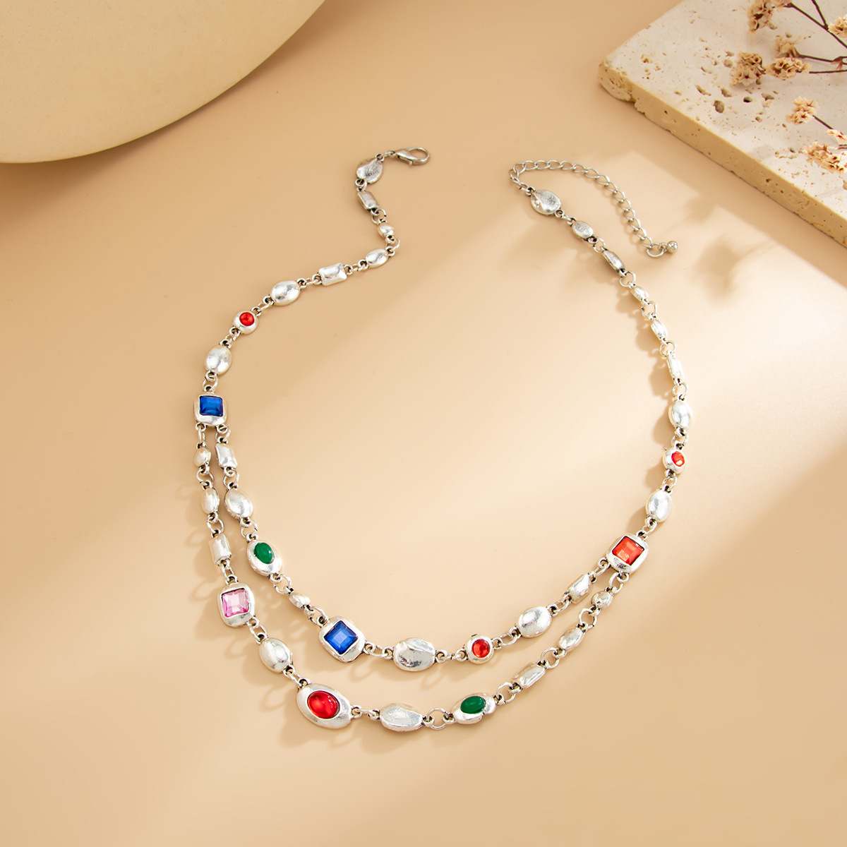 Acrylic Double-layer Necklace Vintage Light Luxury Delicate Temperament Neck Chain