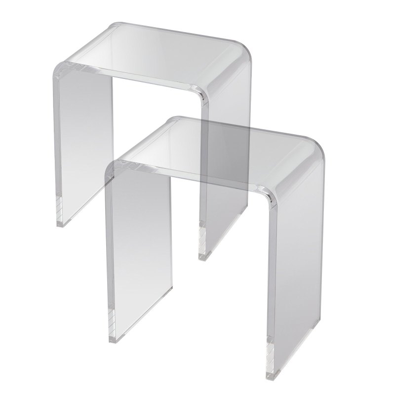 Sleek & Simple Design: Here we provide two acrylic end tables with the dimension measuring 6.3x12x18.1 in/415x305x460 mm. They are not only provide storage for small items but also serves various functions such as displaying decorations and serving as a workstation. The smooth edges significantly reduce the risk of daily bumps and injuries.