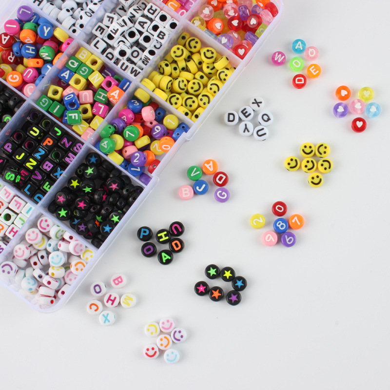 Acrylic English Letters Plastic Round Square Loose Beads Set