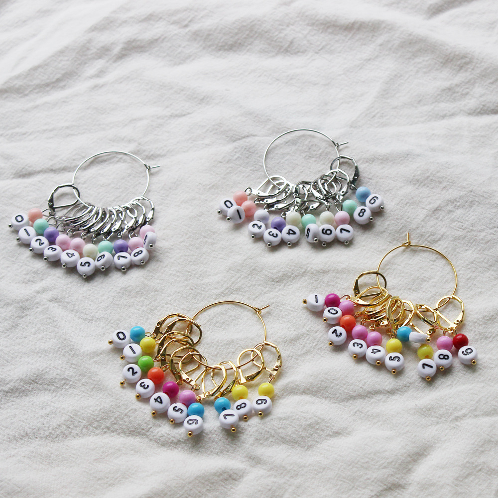 Acrylic String Beads Digital Mark Pendant Color Earrings