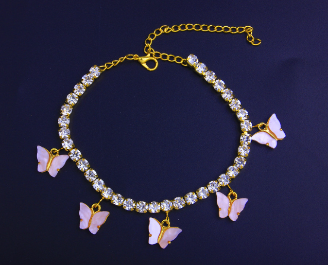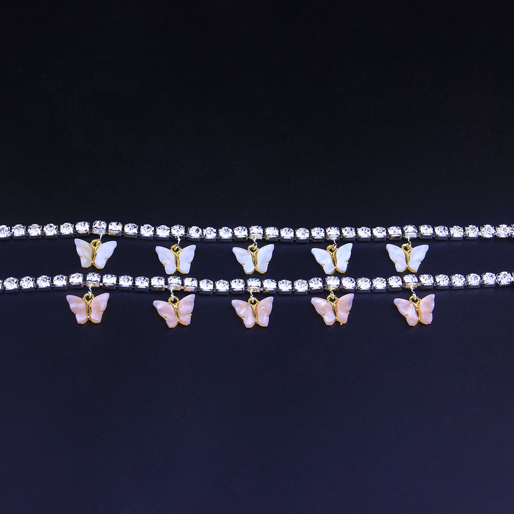 Name: Acrylic butterfly chainProduct material: water drillWeight: 16gColor: silver goldSize: 20+8cm