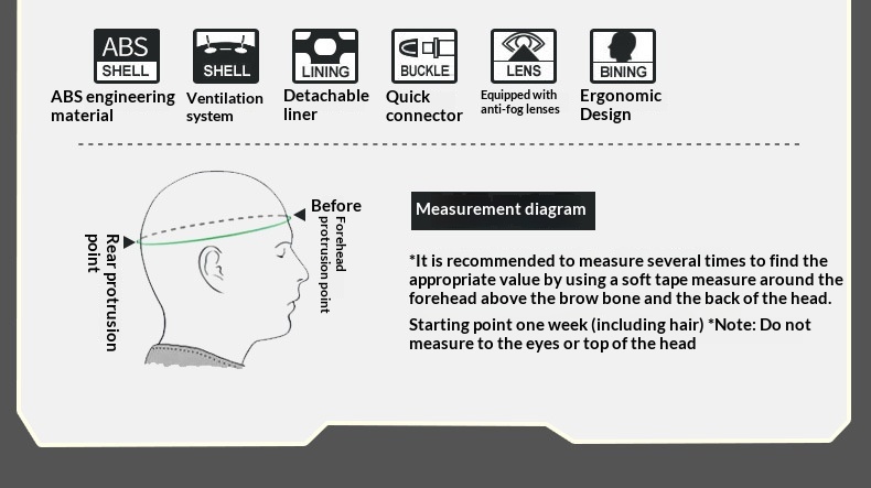 Sizes: M [55-56 head circumference], L [57-58 head circumference], XL [59-60 head circumference], XXL [61-62 head circumference]