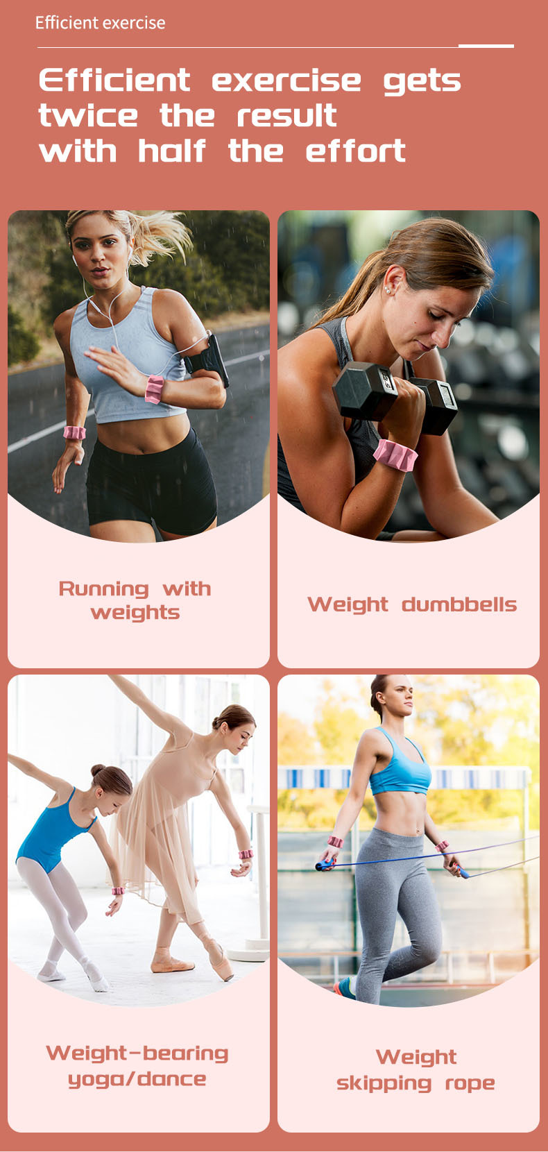 1.Exercise Easily at Any Time: The weight on your wrist can help yoga, running, aerobics, Pilates, walking, travel, home exercise, core training and other sports. These weights are also very suitable for wearing while working at home.