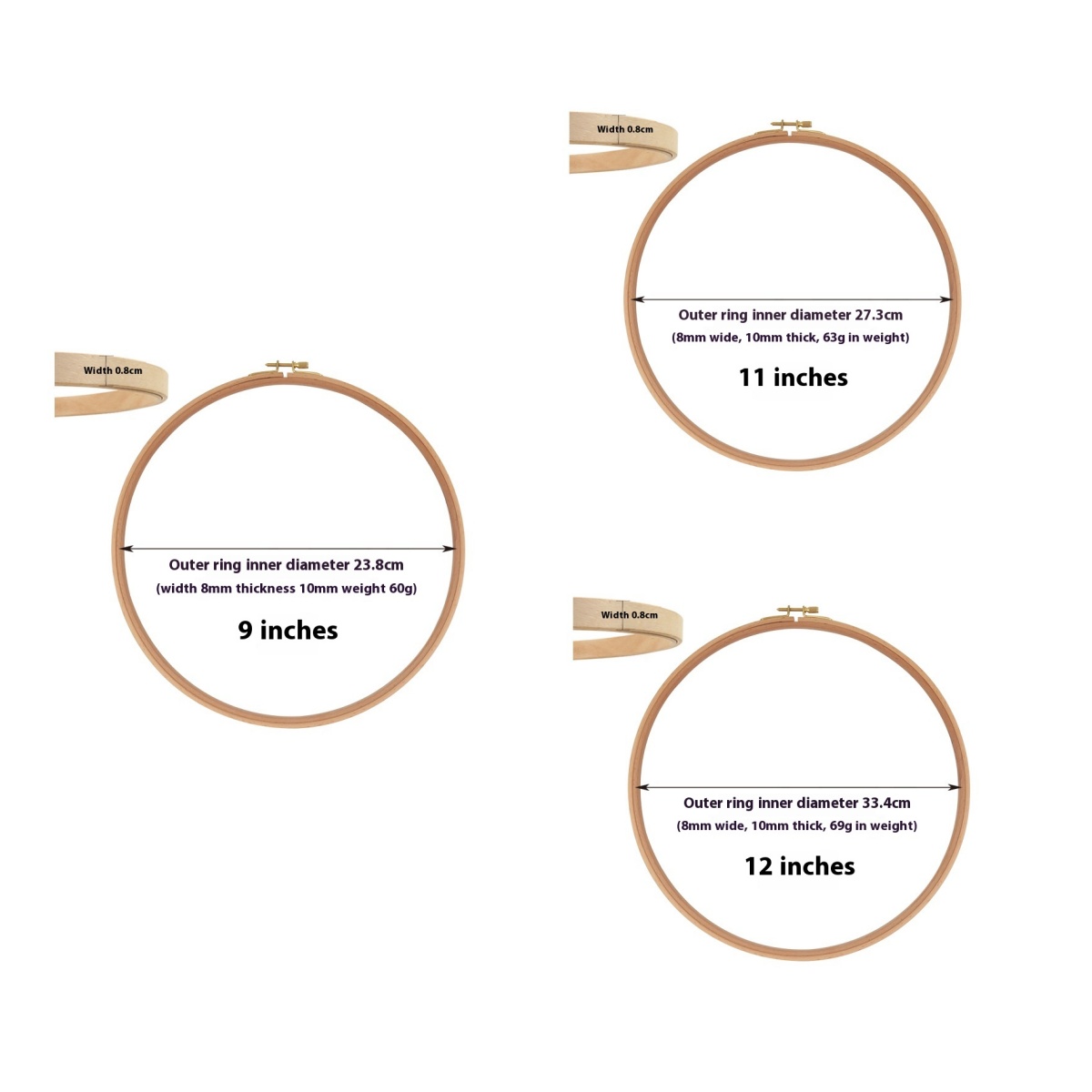 Size: 4 inches, 5 inches, 6 inches, 7 inches, 8 inches, 9 inches, 11 inches, 12 inches,