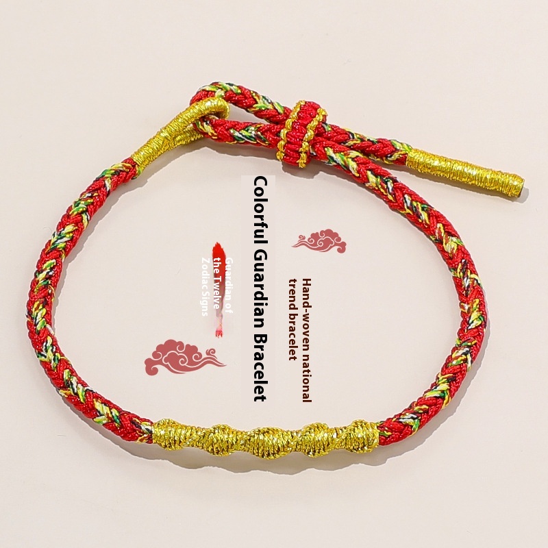 Color: Eight-strand woven colorful Guardian strap sapphire blue colorful (zodiac Rat), eight-strand woven colorful Guardian strap red colorful (Chinese zodiac cow, Tiger), eight-strand woven colorful Guardian strap grass green colorful (rabbit zodiac), eight-strand woven colorful guard strap 18-strand gold thread colorful (Zodiac dragon, snake), eight-strand woven colorful guard strap white colorful (twelve Zodiac horses), eight-strand woven colorful guard strap golden yellow colorful (twelve zodiac sheep, monkey), eight-strand woven colorful guard strap black colorful (rooster zodiac), eight-strand woven colorful guard strap purplish red colorful (china chinese zodiac dog, pig)