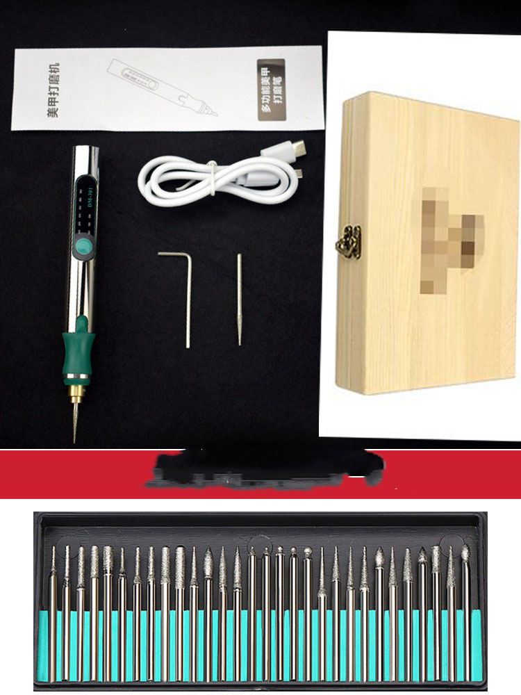 1*Grinding machine+1*USB cable+1*Instructions+1*Packing box + 30 grinding needles+Wooden box*1