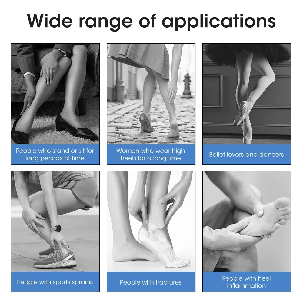 4. It is not only suitable for working women, dancers, and workers who stand for long periods of time and wear high heels for a long time but also for patients with foot sprains and fractures who need postoperative foot care.