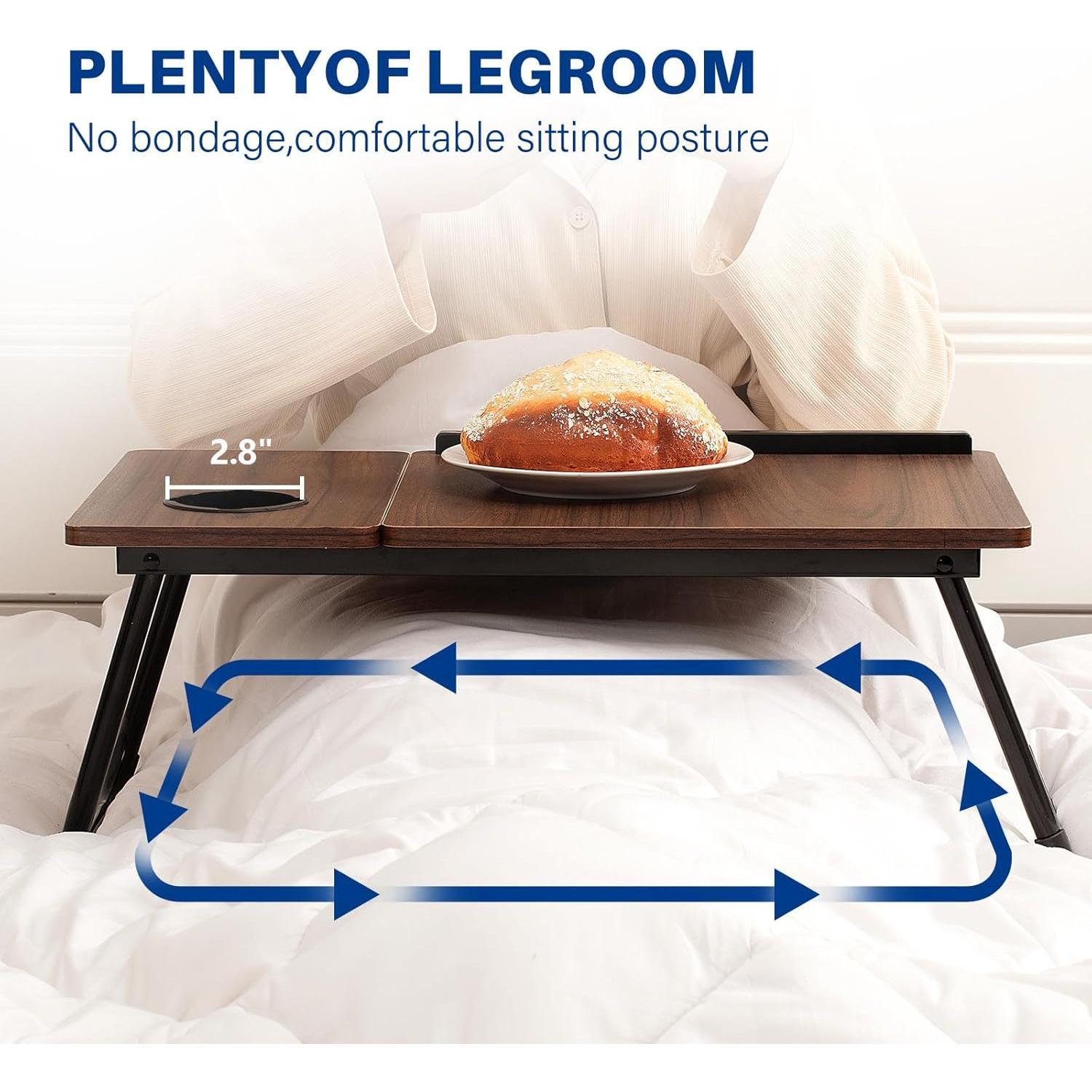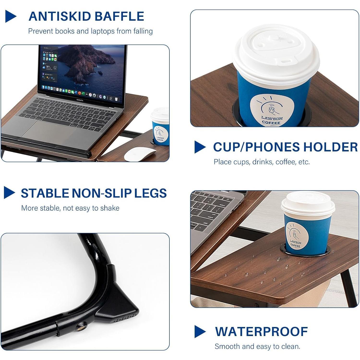 3.Comprehensive anti slip and stable design, safe and practical: The table is equipped with anti slip gear strips, thick anti slip foot pads, and dedicated cup holders, which firmly place items such as computers, books, water bottles, etc., effectively preventing them from sliding or tipping over, freeing up hands and providing peace of mind.