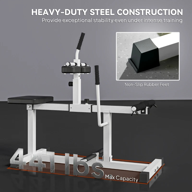 • - Durable and Sturdy: The seated calf workout machine's stable frame is made from powder-coated steel and is built to hold up to 440lbs.
