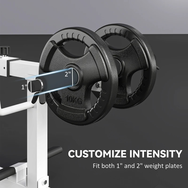 • - Comfortable Calf Workout Machine: Features dual Olympic weight posts and a wide, textured, non-slip foot brace bar for a comfortable workout. Fit both 1" and 2" weight plates.