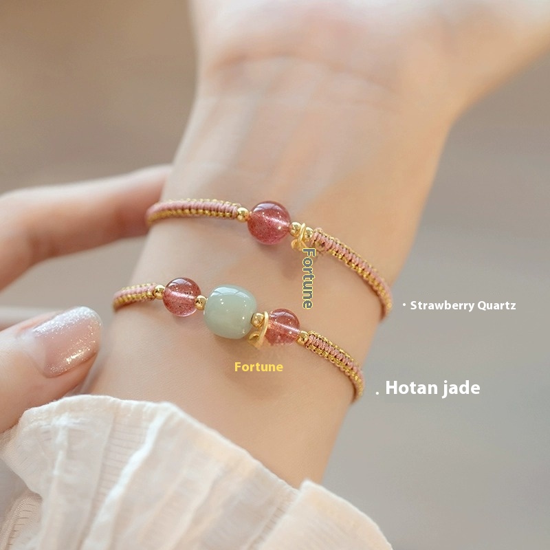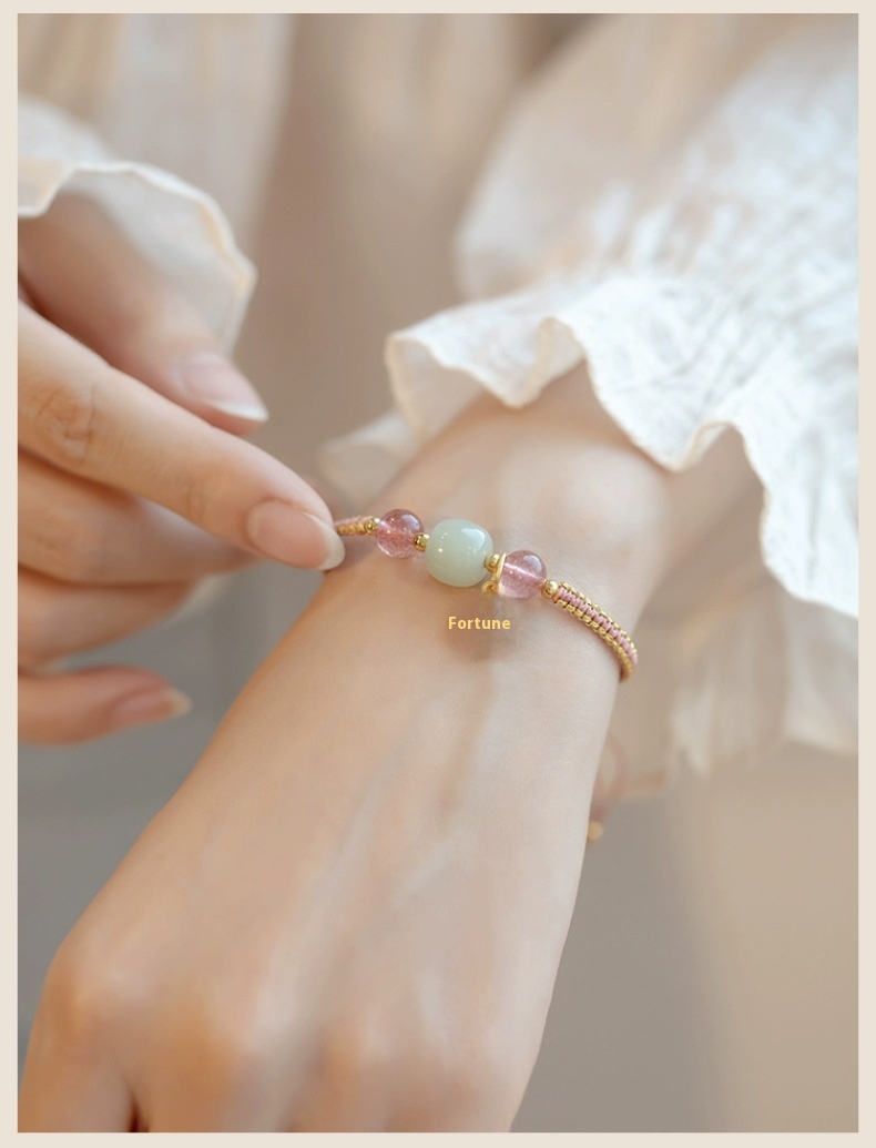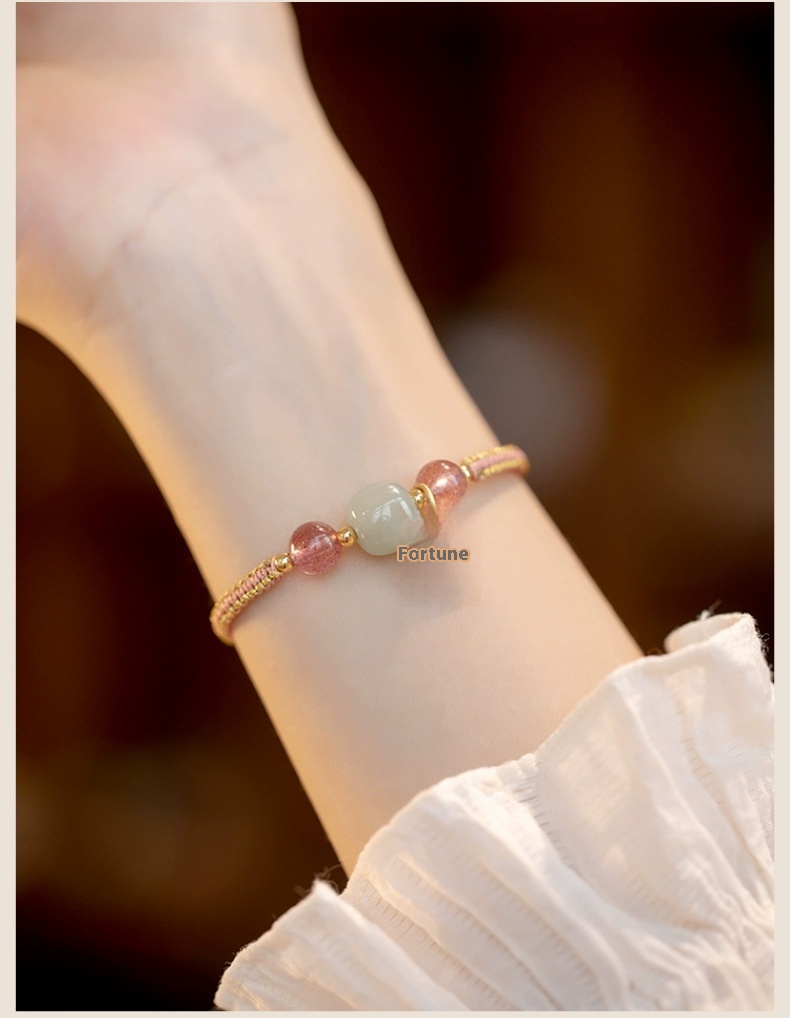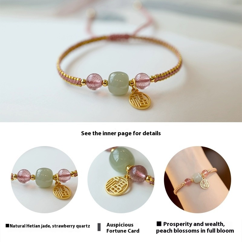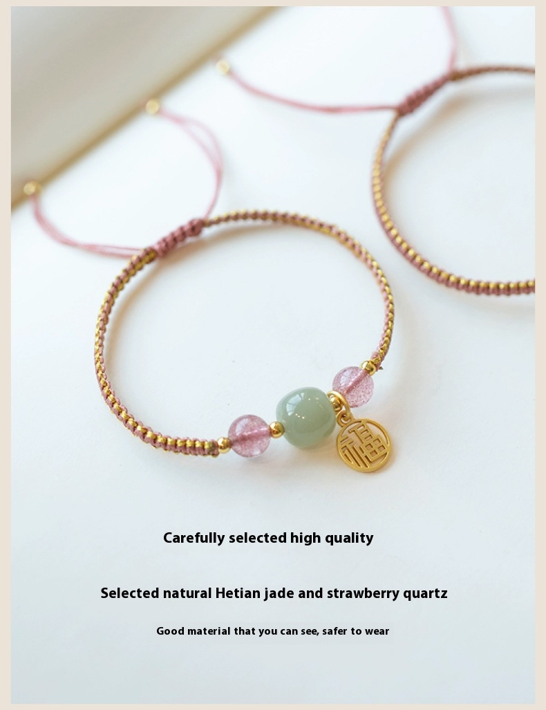 Color: Strawberry quartz adjustable style, Hetian jade adjustable style