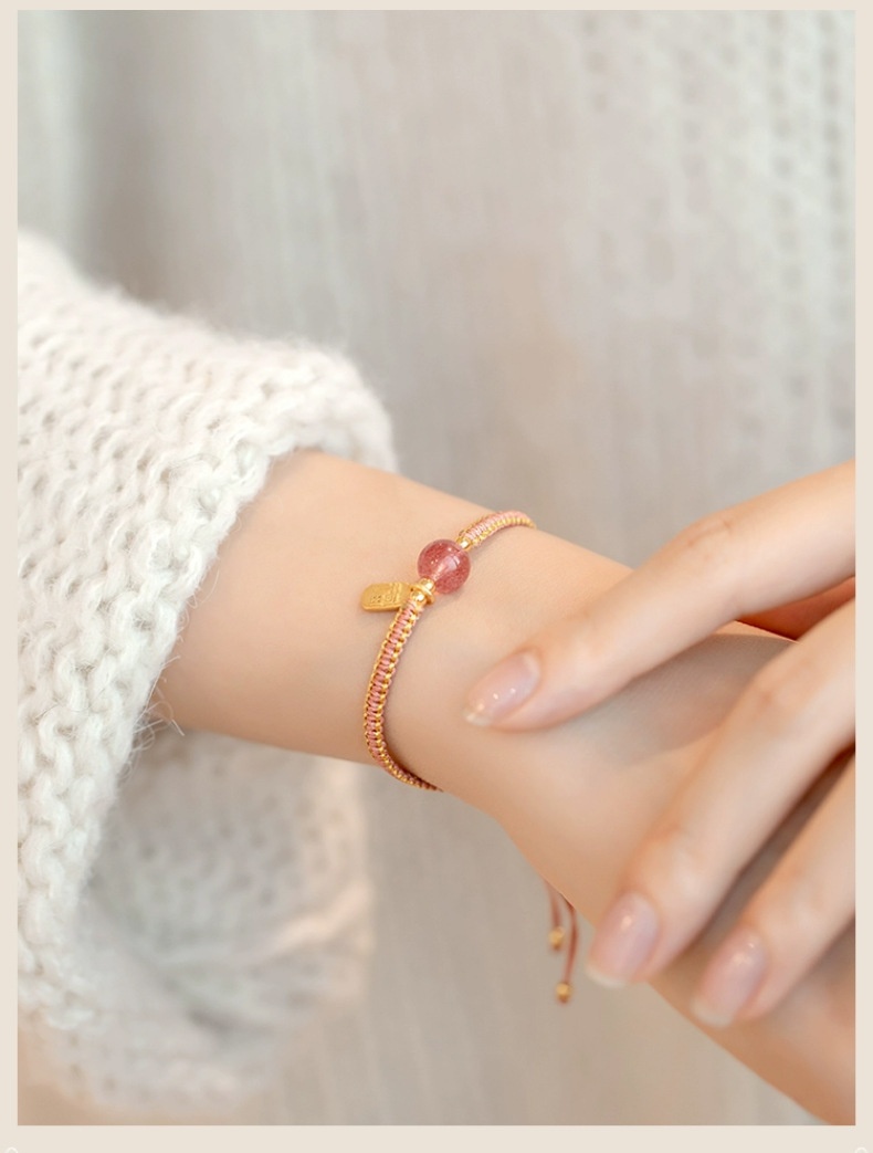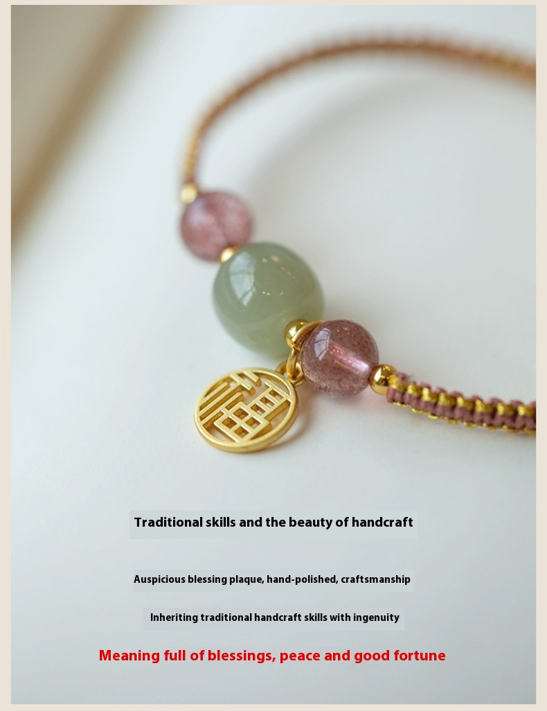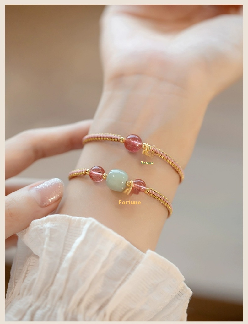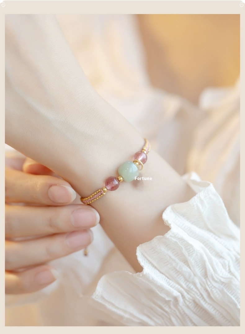 Color: Strawberry quartz adjustable style, Hetian jade adjustable style