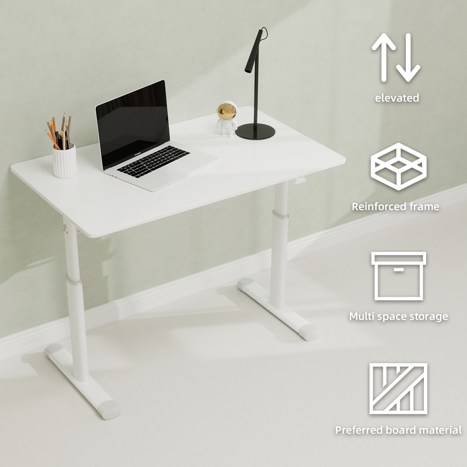 Product Name:Adjustable study desk suitable for children and adults, height-adjustable, multifunctional home office desk, compact design, desktop dimensions: 60cm × 100cm, white frame, white tabletop.