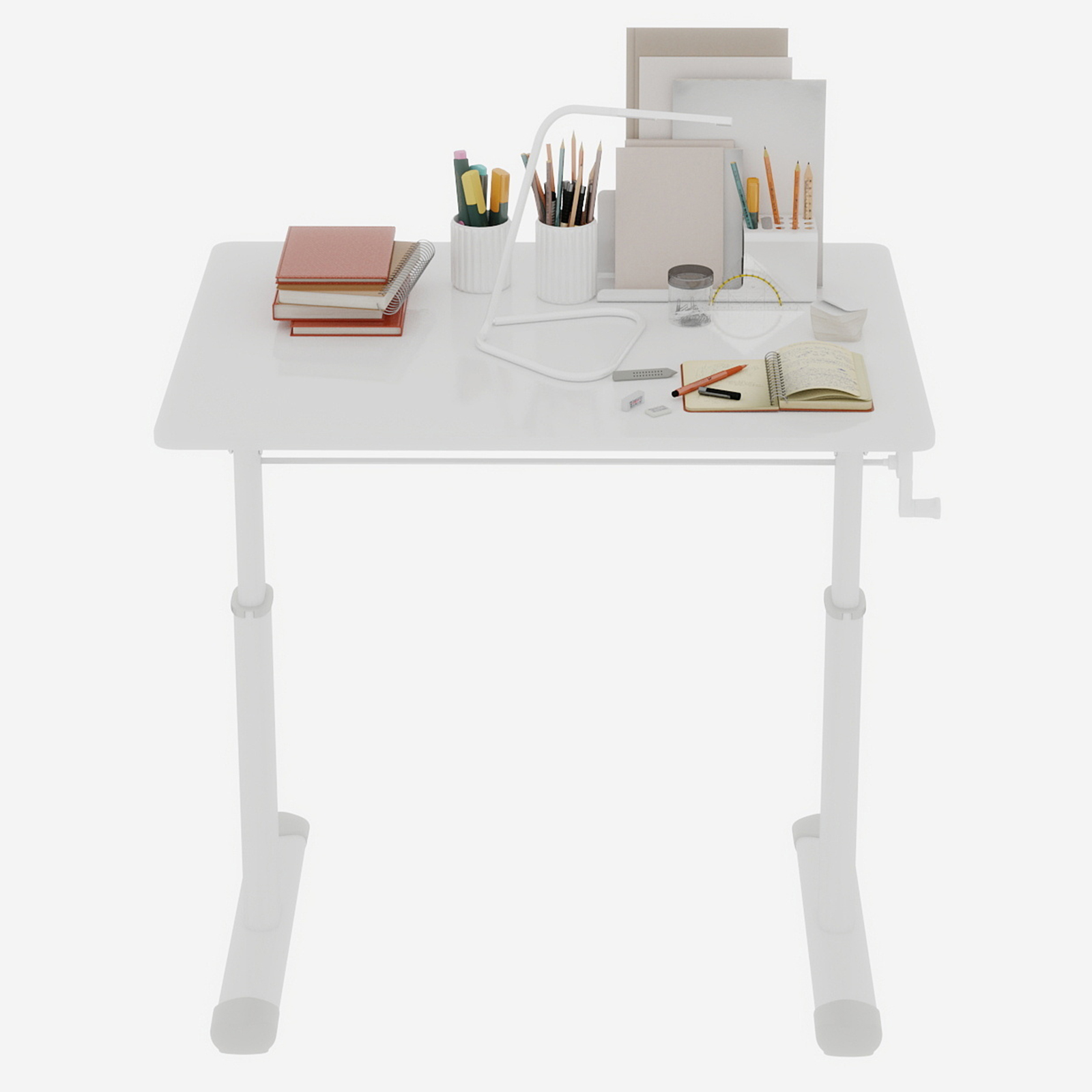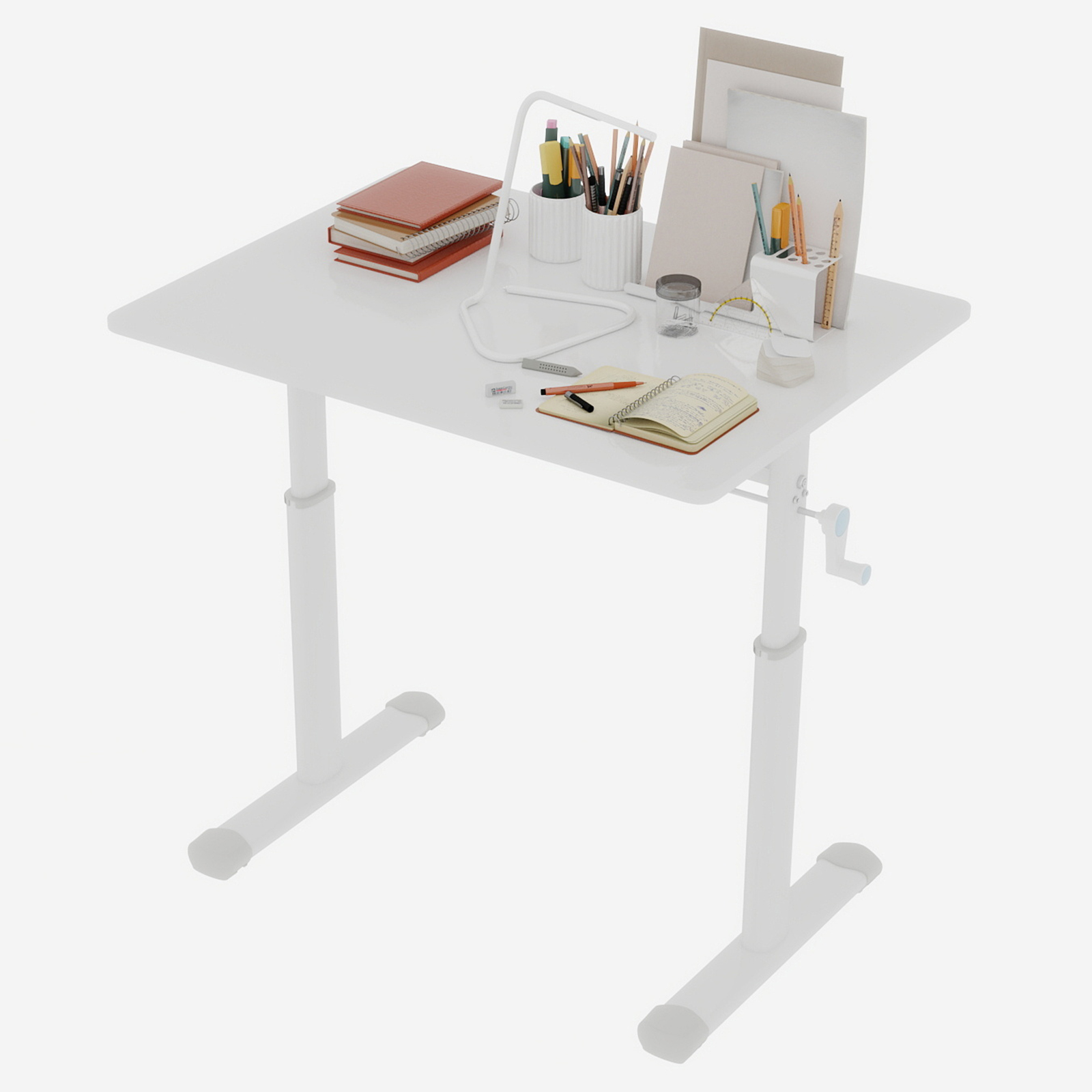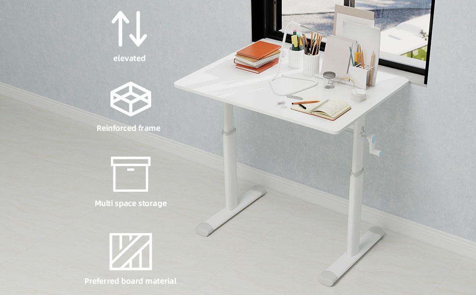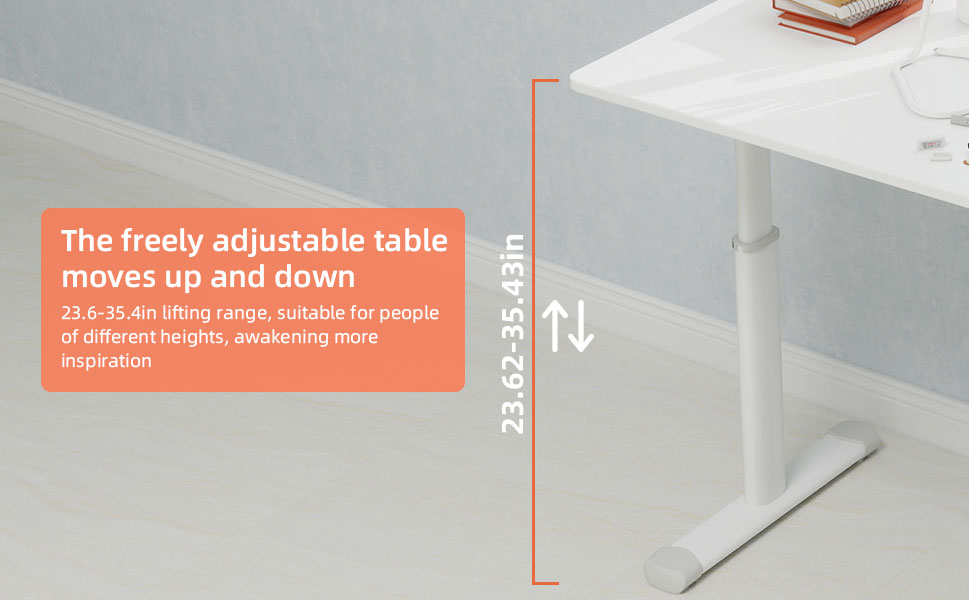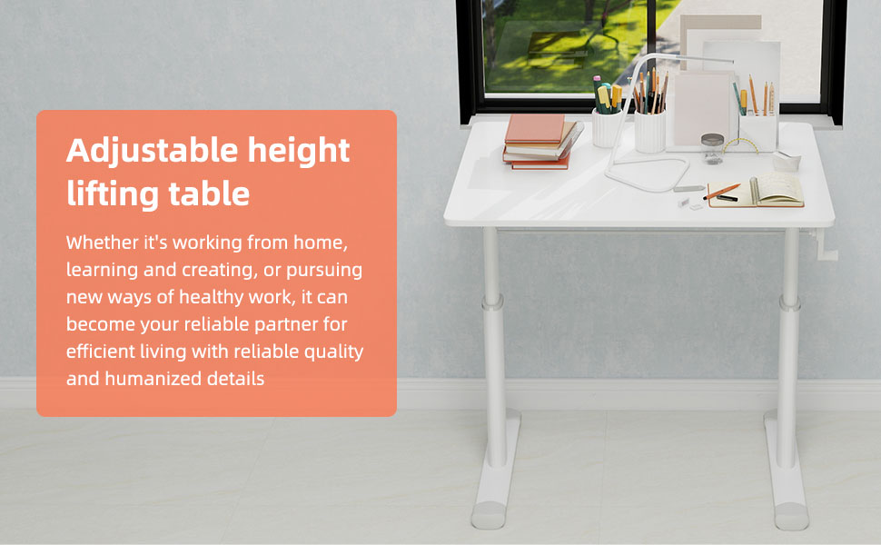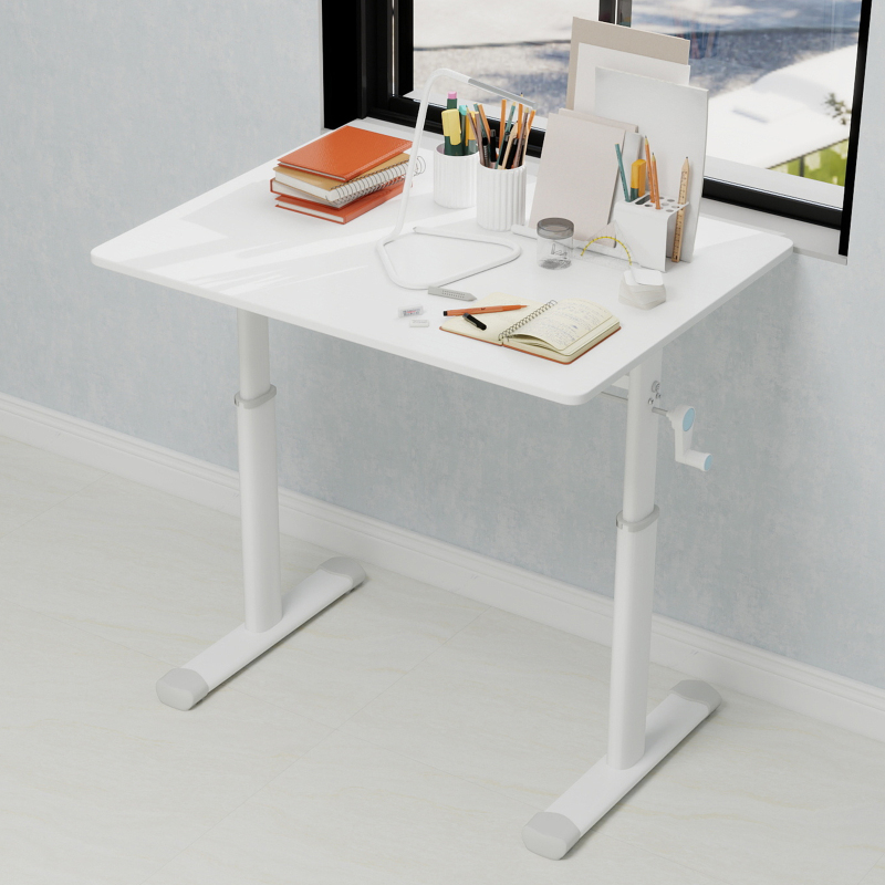 Product Name:Adjustable study desk suitable for children and adults, height-adjustable, multifunctional home office desk, compact design, desktop dimensions: 60cm × 80cm, white frame, white tabletop.