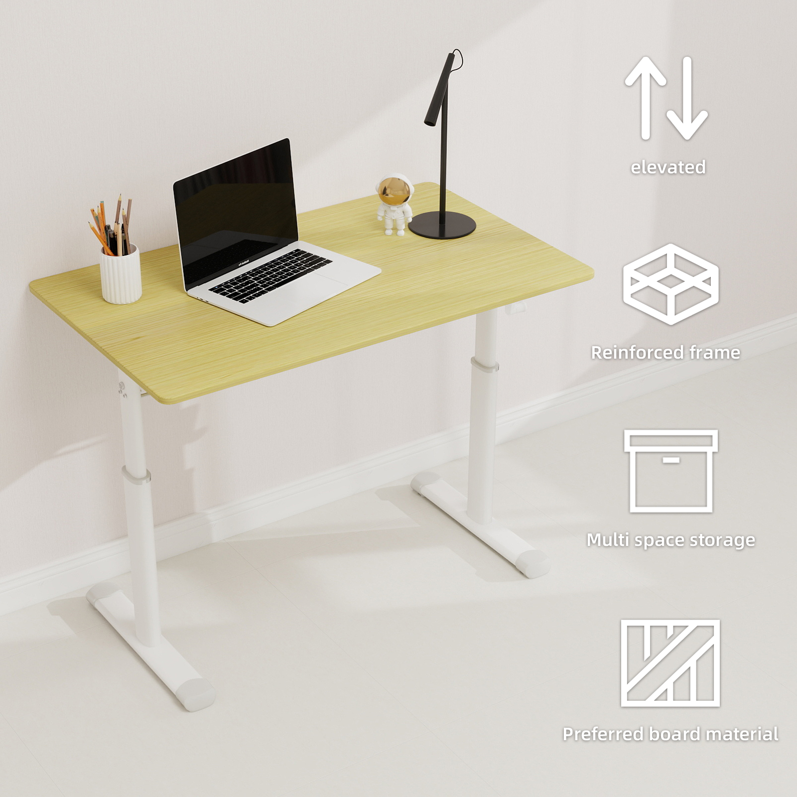 Product Name:Adjustable study desk suitable for children and adults, height-adjustable, multifunctional home office desk, compact design, desktop dimensions: 60cm × 100cm, white frame with natural wood-colored tab