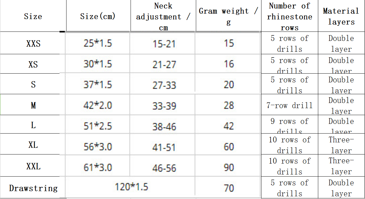 Specification (length * width): XS 30 * 1.5CM, S 37 * 1.5CM, M 42 * 2.0CM