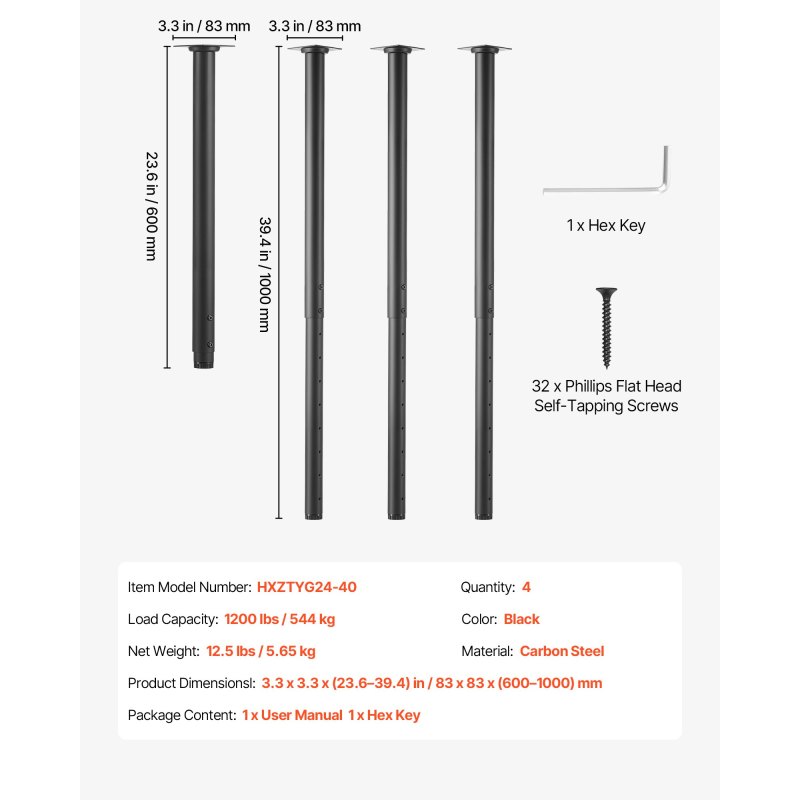 Adjustable Height: Each table leg adjusts by installs through preset screw holes from 24-40 in / 610-1016 mm, making these metal table legs suitable for DIY coffee tables, side tables, desks, dining tables, and workbenches