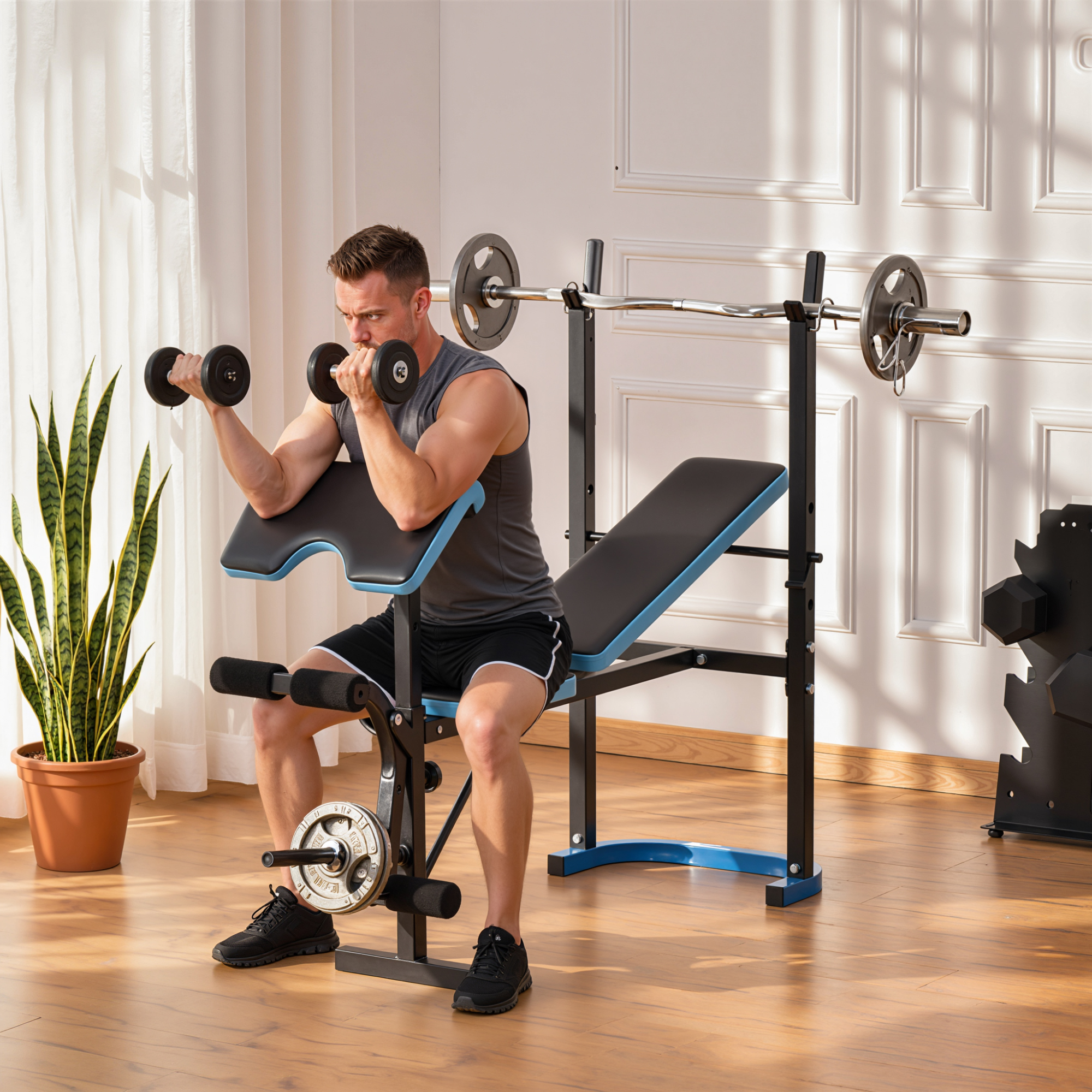 Elevate your strength training and muscle-building journey with the multi-function weight training bench, perfect for home or office workouts. Crafted from robust steel with a powder-coated finish, this bench promises durability for long-term use. Its high-density foam seat, back pad, and leg rollers ensure optimal comfort during intense sessions. Ideal for all fitness levels, this bench supports your goals of building, toning, and maintaining muscle mass.