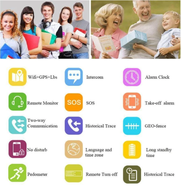 Precise positioning, SOS help, low battery reminder, remote shutdown, sleep monitoring, wrist off alarm