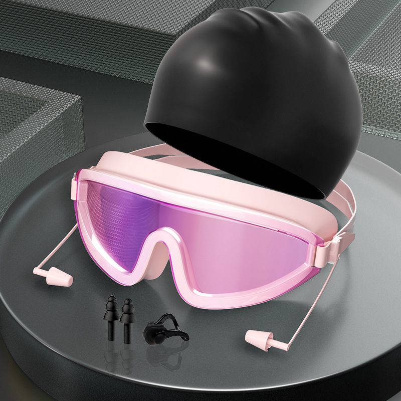9style: transparent powder-borderless colorful colors + PU swimming cap [waterproof upgrade one-piece earplugs]
