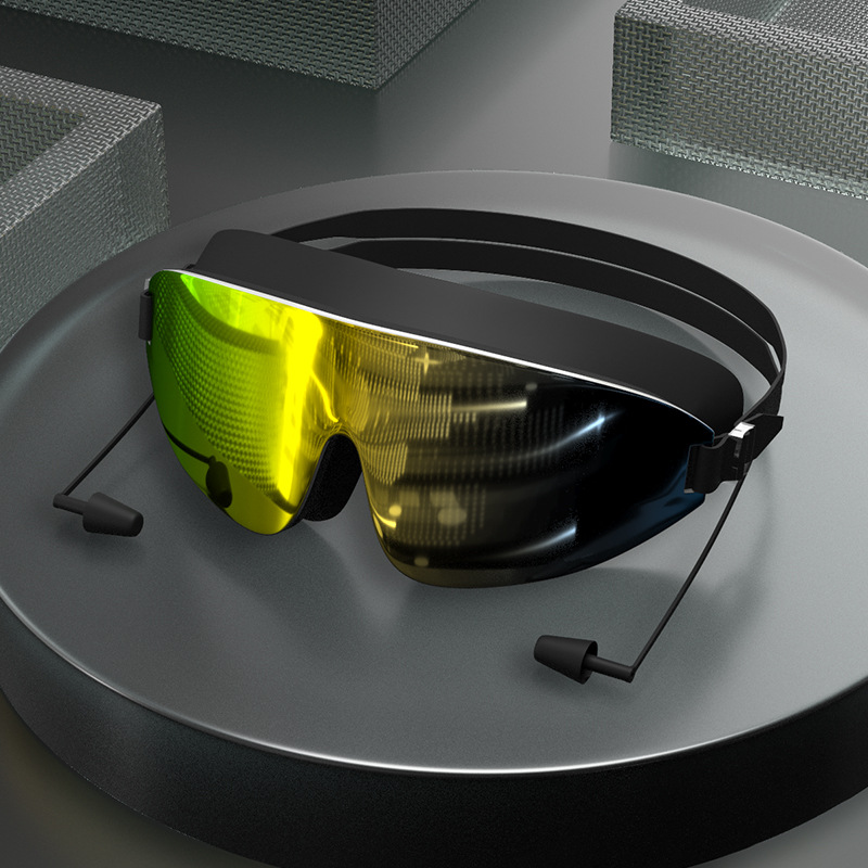 14style: electroplated gold black-borderless cool trend meter + PU swimming cap [waterproof upgrade one-piece earplugs]